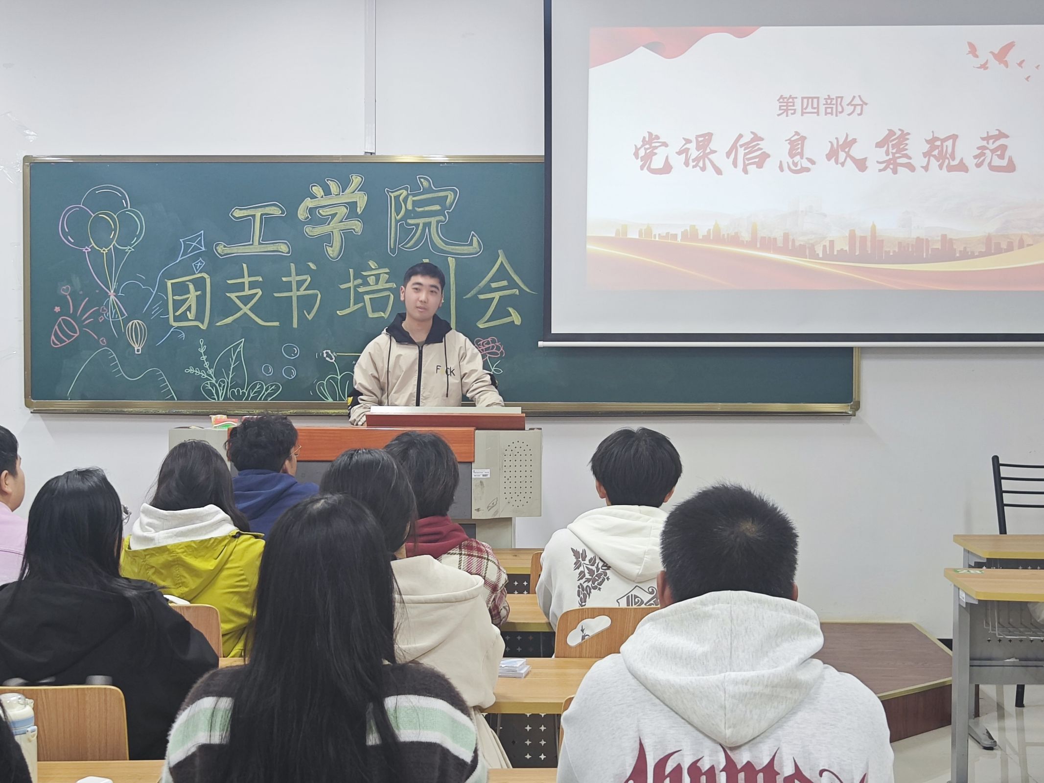 为进一步提升我院各班团支部书记党建工作的业务水平,2024年11月1日下午工学院党建工作部于敏行楼111教室顺利开展工学院团支部书记党建工作专项培训,此次会议由党建工作部孟博凡同学和钱天赐同学主持,各班团支部书记积极参加。