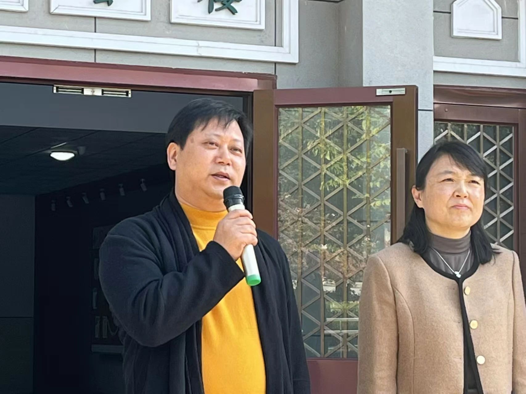 紧接着,丹阳市美术家协会主席徐俊发言。他谈到,作为美术家协会成员,看到这样高水平的画展在本地举办深感欣喜。徐建明老师和姚媛老师在中国画领域造诣深厚,他们的作品无论是构图、色彩还是内涵,都展现出极高水准。这次展览不仅对中北学院学子是一个很好的学习契机,也将激励本地更多美术爱好者投身创作,推动地方美术事业发展。