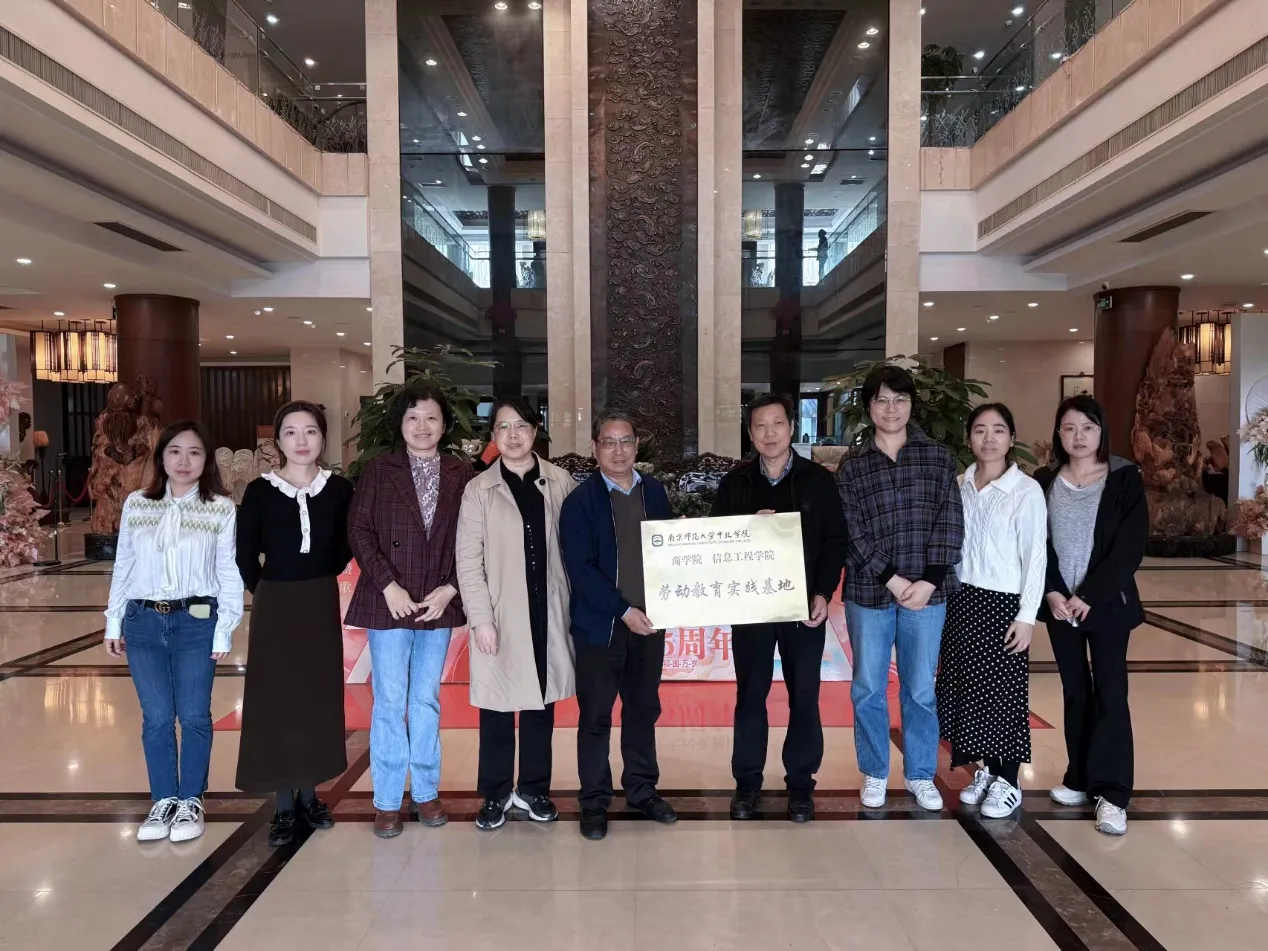 为深入学习贯彻习近平总书记关于教育的重要论述,全面贯彻党的教育方针,落实《中共中央国务院关于全面加强新时代大中小学劳动教育的意义》和《大中小学劳动教育指导纲要(试行)》的文件精神,加快构建德智体美劳全面培养的教育体系,2024年11月12日,我院和信息工程学院与丹阳市超力生态园共建的“劳动教育实践基地”挂牌仪式在生态园区举行。超力生态园总经理吴敏德、商学院院长田文、副院长倪德慧、信息工程学院党总支书记孙茂华、副院长张洁,以及其他教师代表参加了此次挂牌仪式。