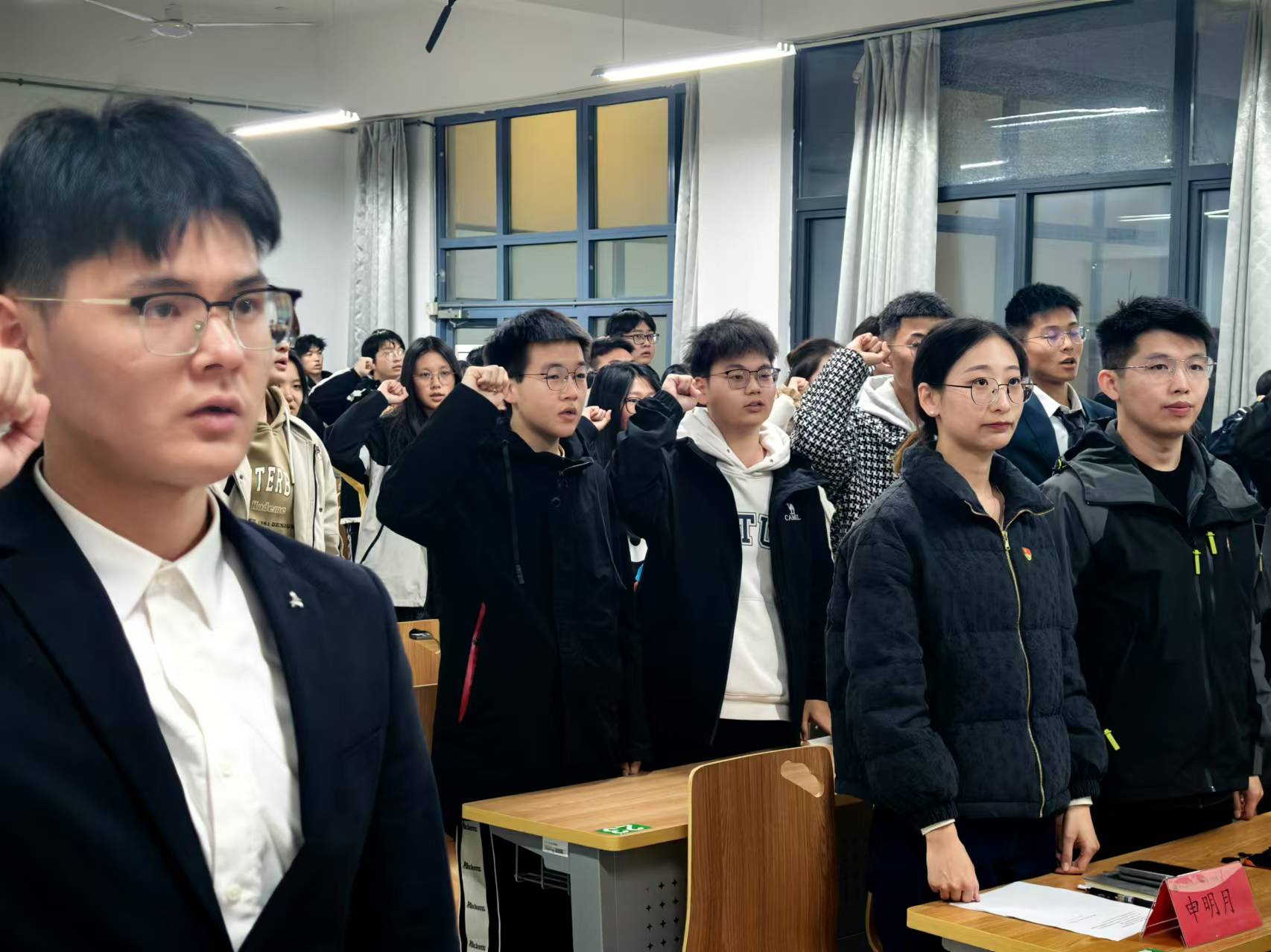 在领誓人张道延同学的带领下,全体学员面向鲜红党旗,高举右拳对党课规章制度进行庄严宣誓,表明会认真上好每一节党课,努力向党组织靠拢,坚决拥护党的领导,践行党的宗旨。大家满怀激情、气宇轩昂,更加明确了自身定位和初心使命。