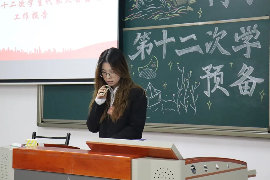 商学院学生组织委员代表祁喻宣读《ky.com商学院第十二次学生代表大会筹备工作报告》。报告就学代会相关工作筹备的完整流程,向各学生代表进行了通报,有力地保障了流程的公开透明以及严谨规范。