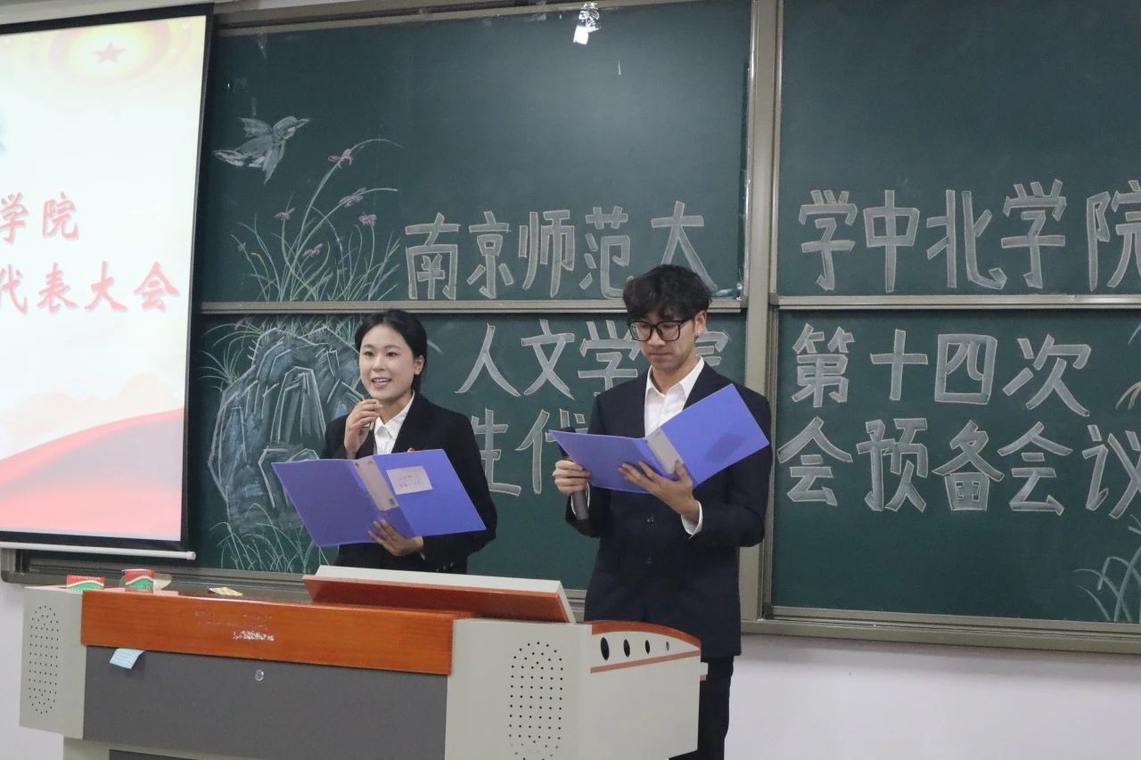 随后,办公室代表傅旻玥和施云逸分别宣读了《中北学院人文学院第十四次学生代表大会主席团名单》和《中北学院人文学院第十四次学生代表大会选举办法》。