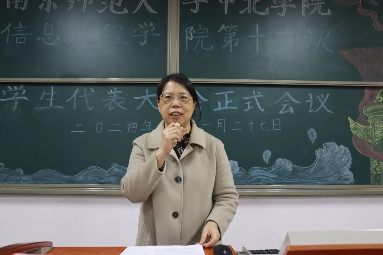 信息工程学院党总支书记孙茂华老师亲切问候在场师生,强调学生代表大会是代表学生的群众组织,是学院联系学生的桥梁和纽带,代表了学生最基本的权利与应履行的义务。孙书记表示,希望我院学子能够坚定理想信念、厚植爱国情怀、矢志艰苦奋斗,努力学习科学文化知识,不断提升综合素质,成长为堪当民族复兴大任的时代新人。