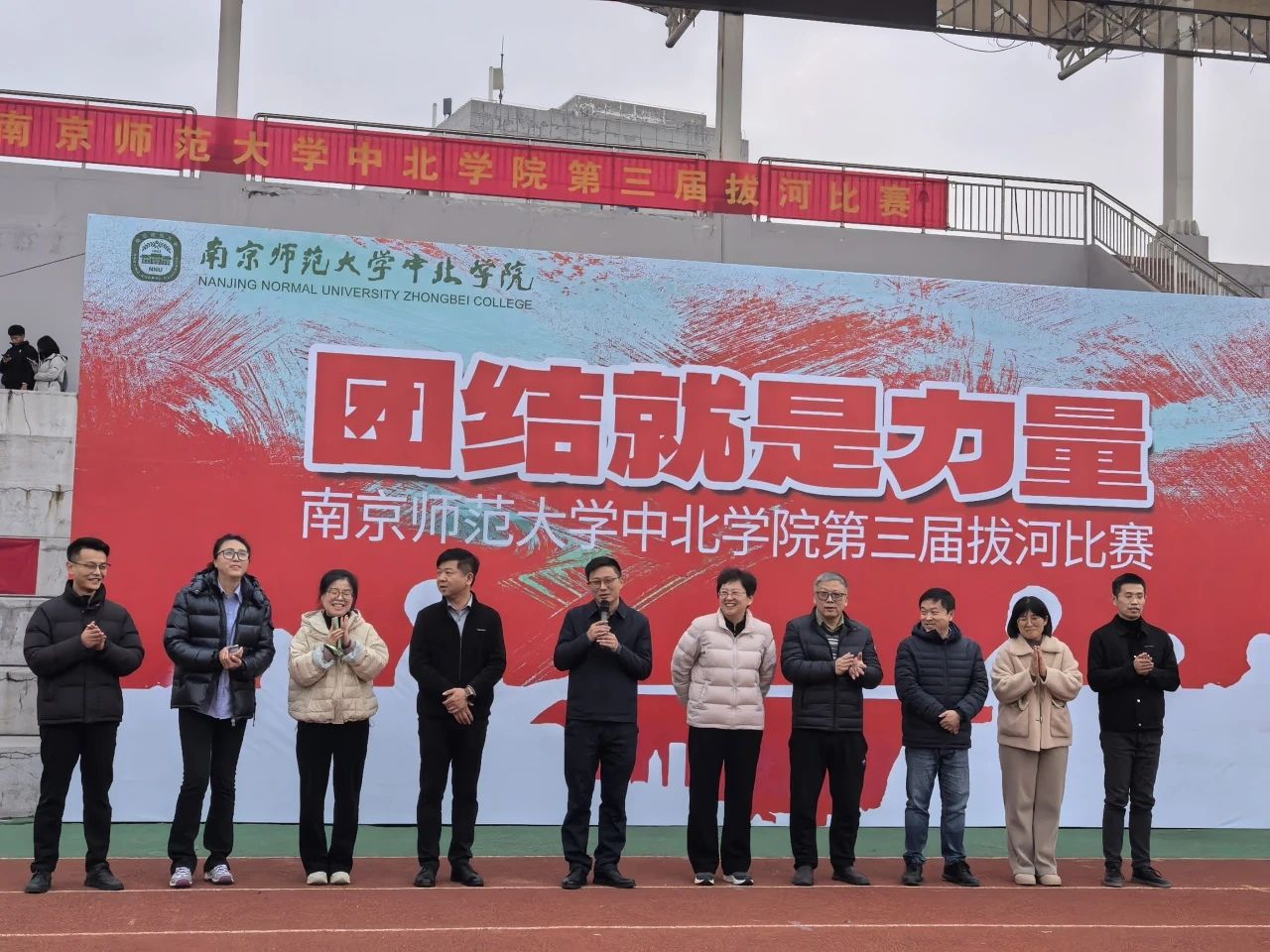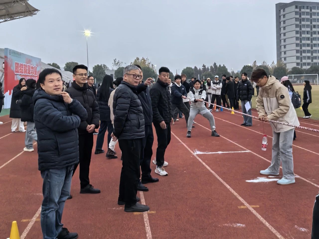 为进一步丰富校园文化生活,营造积极向上、健康文明的校园气氛,提升学生的身体素质,培养学生团结合作精神和集体荣誉感,ky.com于12月5日16:00在北苑田径场举办第三届拔河比赛。信息工程学院院长曲维光、党总支副书记周健到场为健儿们加油鼓劲。经过激烈的角逐,我院在本届校拔河赛中勇夺第一。