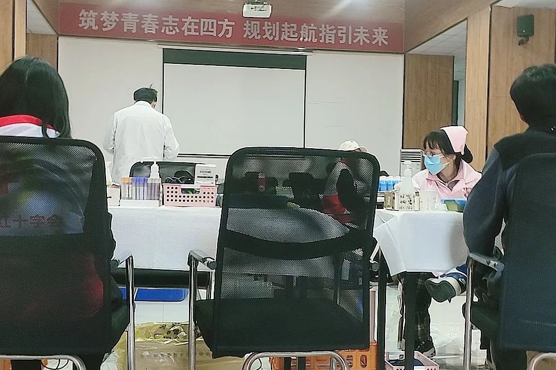 信息工程学院的学生党员们在工作人员的引导下,依次完成信息登记、血压测量、血液初筛、捐献血液。参与献血的学生党员们为患者送去急需的生命源泉,通过行动诠释“为人民服务”的初心和使命。