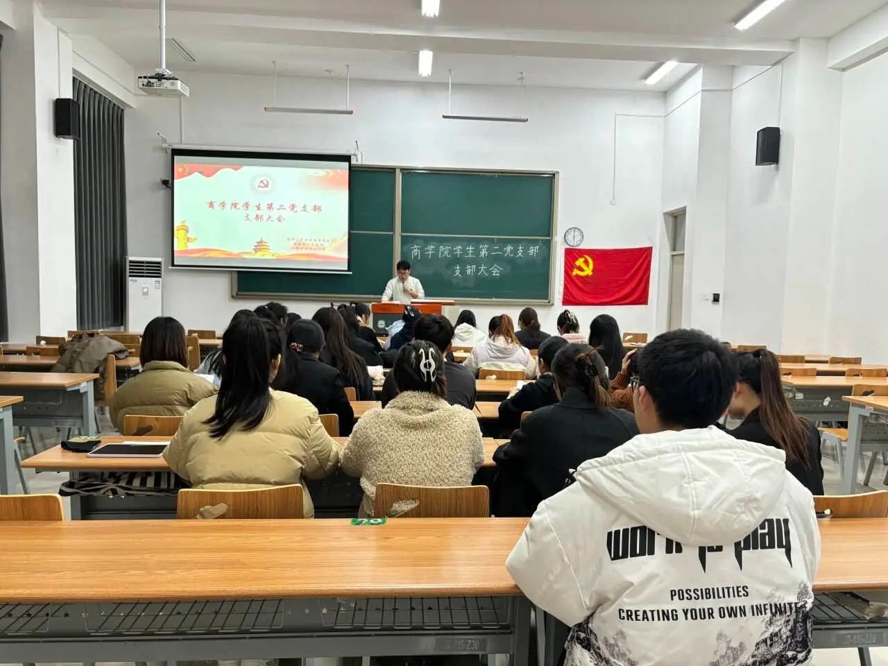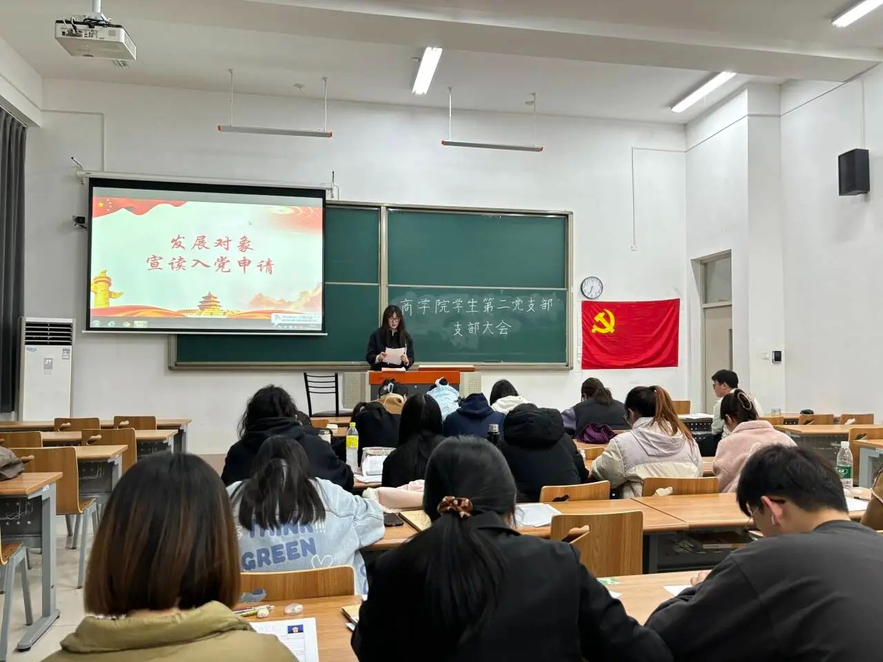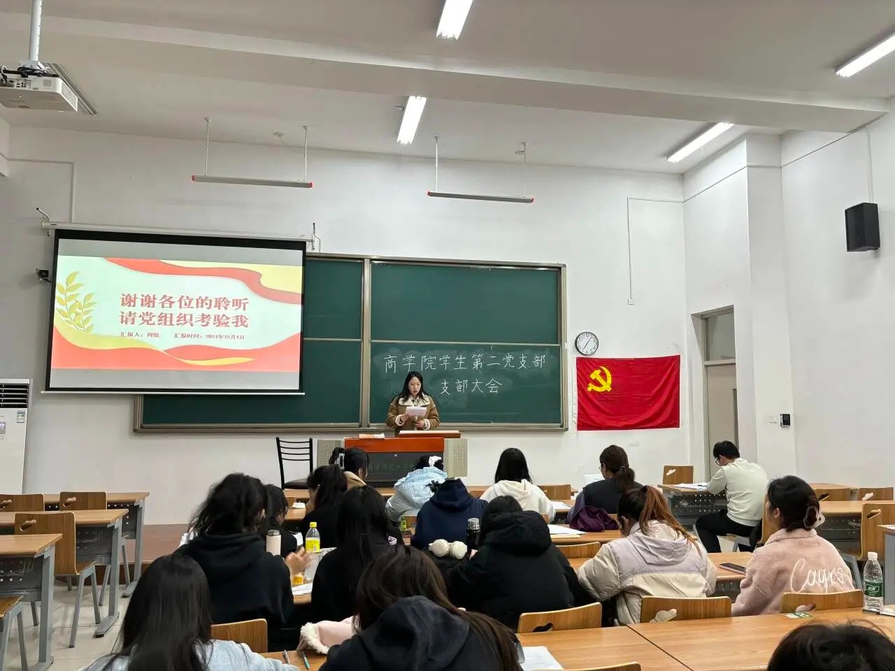 为进一步加强党的基层组织建设,提升我院党支部活力,2024年12月4日晚18:00,商学院学生第一、第二党支部分别于敏行楼109教室和敏学楼115教室召开支部大会,出席本次会议的有商学院学生党支部书记芮锦绣、郝思捷、全体学生党员以及本次发展对象。