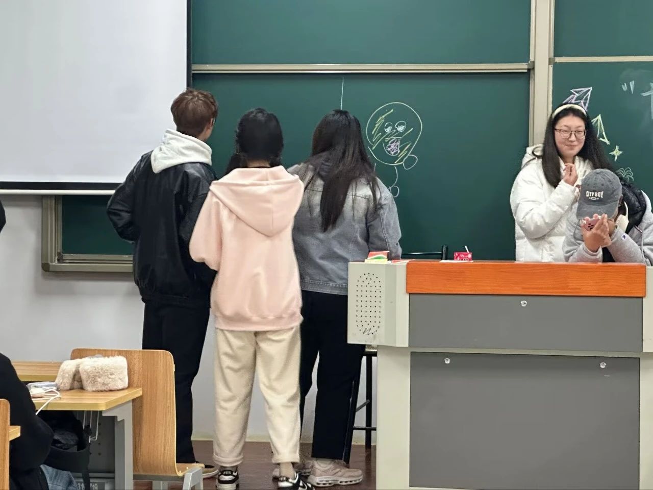 全班分为四组,每组选出五位同学上台作画,每人仅有5秒钟的时间进行作画,其他组员猜成语,限时一分钟。这一环节既考验了同学们的绘画技巧,又锻炼了大家的团队协作能力和想象力。
