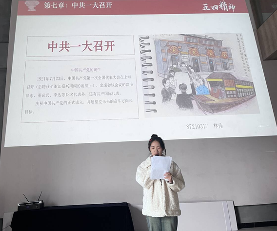 首先,我院学生党员孙欢带领师生共同回顾了学员们的学习培训情况。在本次初党培训中,学员们积极参与学习线上及线下课程,投身到社会实践环节,不断加强对党的基本认识与理解。