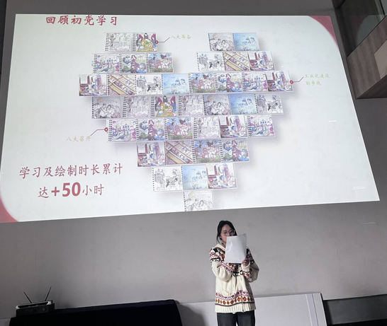 在实践环节,我院组织开展了“初心之路,党旗引领”——打造红色绘本的实践活动,学员们通过开会讨论、分工协作,将党史故事以绘画绘本形式的展现出来。最后进行实践成果汇报展示,希望以讲促学的方式促进学员共同感悟红色故事。该环节不仅使学员们对党的伟大精神有了更生动且深刻的感悟,坚定了入党信念,同时也产生了多幅优秀作品,培训取得了显著成效。