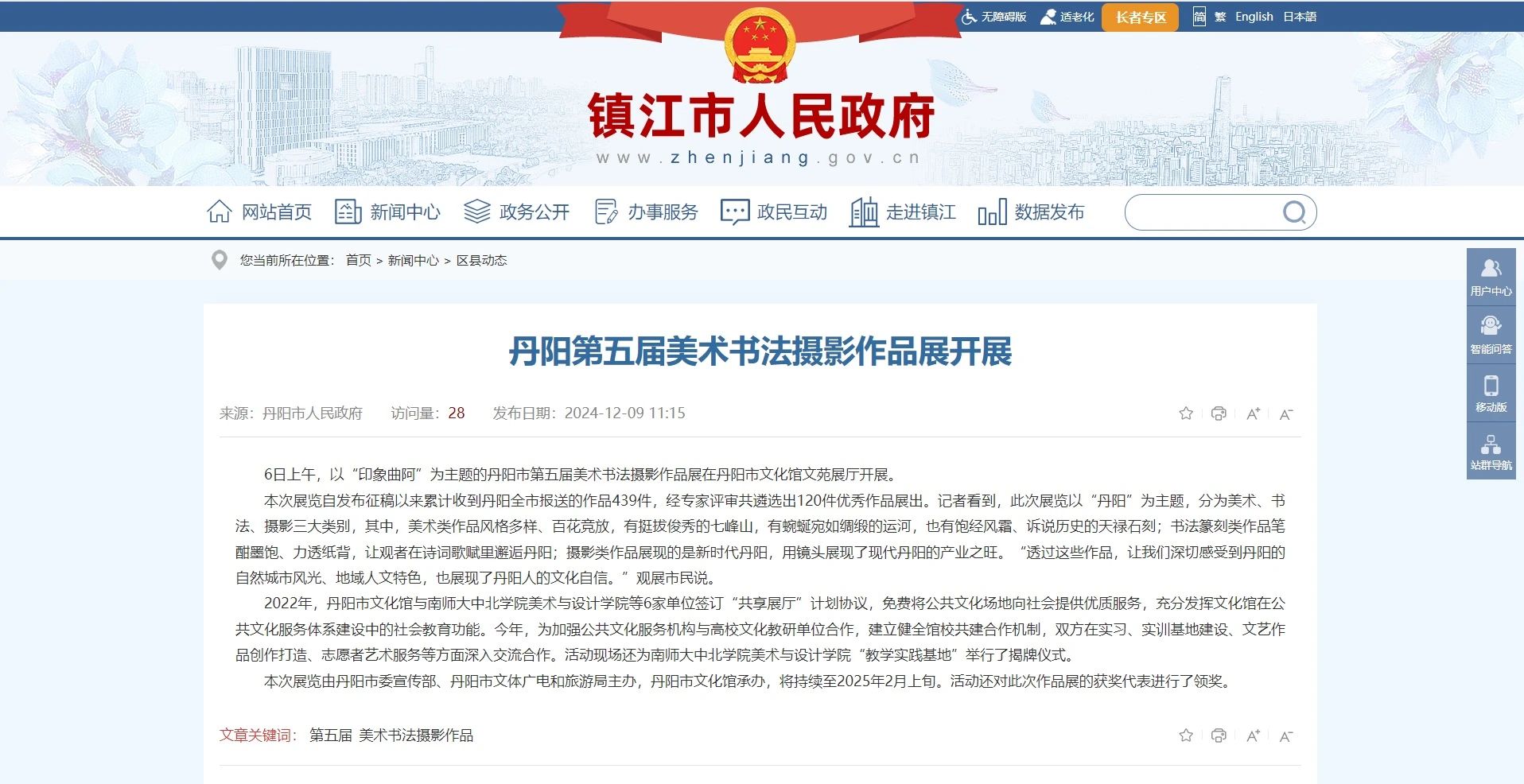 此次合作以“‘印象曲阿’——丹阳市第五届美术书法摄影作品展”为契机,进一步加强联动。该展览由中共丹阳市委宣传部、丹阳市文体广电和旅游局主办,丹阳市文化馆承办,ky.com美术与设计学院协办,在文化馆文苑展厅展出。展览以丹阳为主题,展出了从全市 439 件投稿中精选的 120 件美术、书法及摄影佳作,充分展现了丹阳的文化魅力与地域特色。