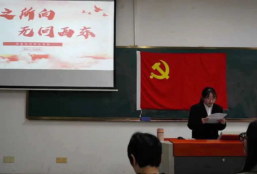 黄瑞、余思翰等六名预备党员依次汇报了在预备期间的思想政治、学业成绩、社会工作情况,并根据抽到的题目结合自己的实际展开论述。
