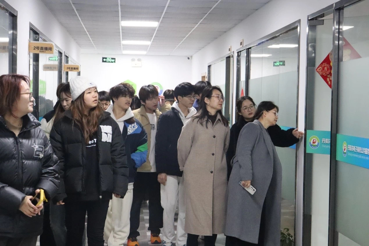 同学们参观了电商大数据中心、特色产品直播展厅、摄影室、网红直播间和运营中心,并了解了丹阳市电商产业的发展历程、运营模式、服务内容等电商知识。助农直播间内摆放着丹阳市各个乡镇的特色农产品,还配备了专业的直播摄像机、高清显示器、麦克风以及稳定的网络设备,确保直播画面清晰、声音流畅。同学们深刻体会到了丹阳的变迁,并在互联网时代背景下,感受到为当地特色农产品发展搭建主流平台的重要性。