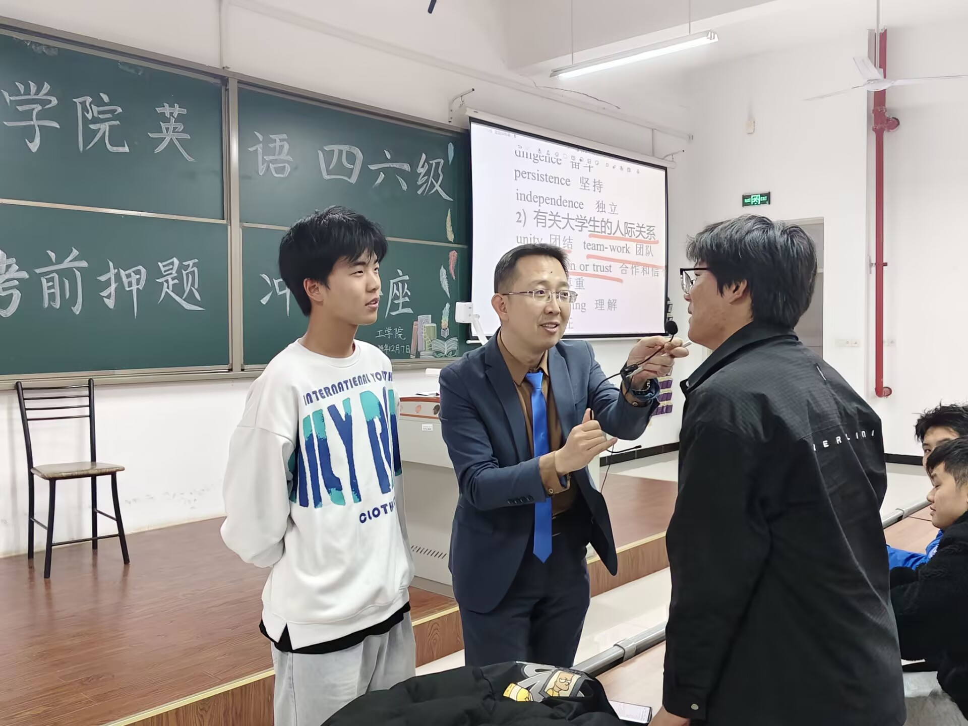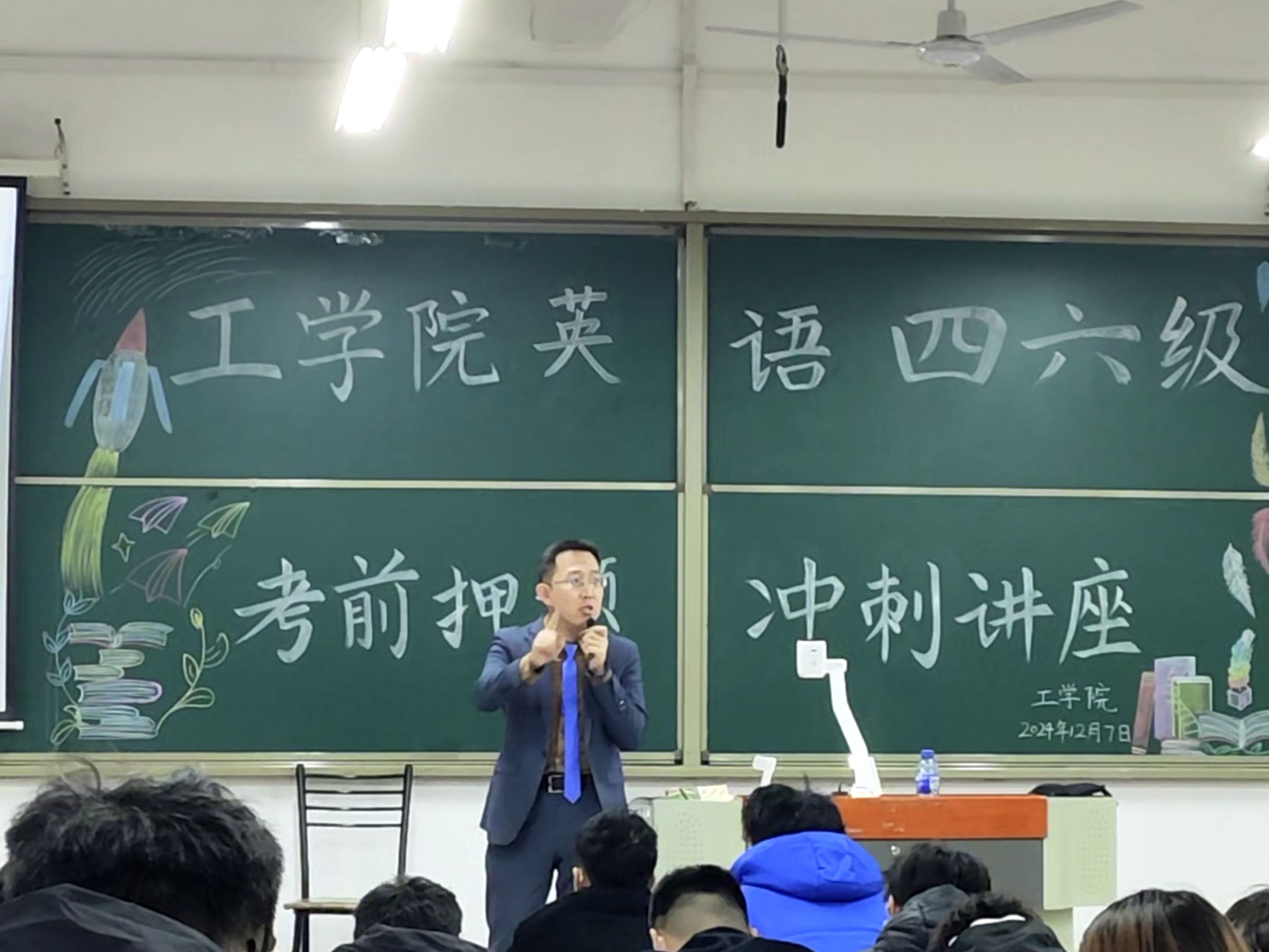 为帮助各位同学更好地备战英语四六级考试,12月7日下午,我院于敏行楼123教室开展四六级考前押题冲刺讲座。本次讲座的主讲人是李明朗老师,工学院学子积极参加。