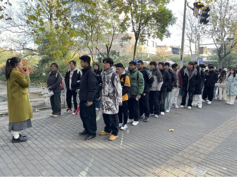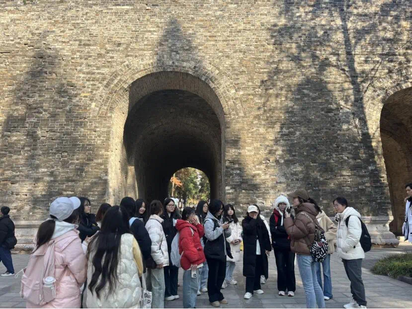 上午,在中旅旅行华东区域公司的安排下,同学们深度体验了源来南京项目部精心设计的南京city walk《如果建筑会说话——中山东路沿线民国建筑和明故宫遗址精讲》线路。同学们分成两队,沿路参观了国民党中央监察委员会办公楼旧址(现东部战区档案馆)和国民党中央党史史料陈列馆旧址(现中国第二历史档案馆)以及著名的午朝门公园、南京明故宫遗址公园和励志社旧址。经过讲解,同学们对中国古建筑建筑屋顶规格、明城墙上城砖文字的由来以及民国时期的历史有了更加深入的了解。