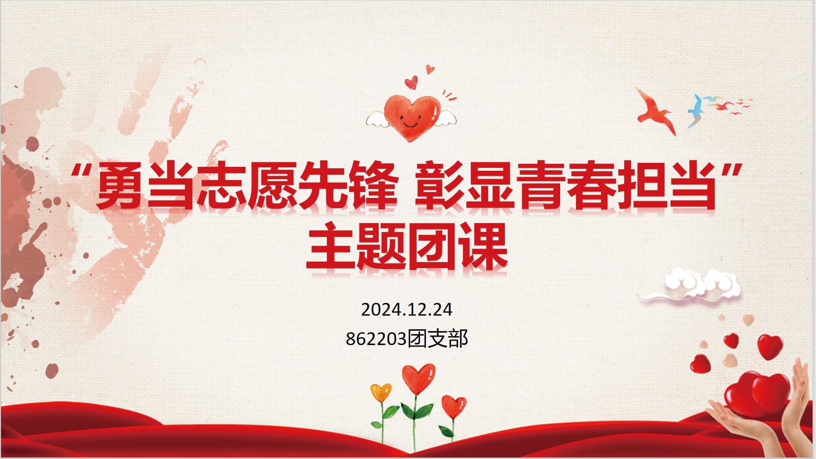 为促进青年继承并弘扬“奉献、友爱、互助、进步”的志愿服务精神,传播志愿服务理念,增强团队协作意识,激发学生积极参与志愿服务活动的热情,ky.com工学院各团支部于12月18日至12月25日开展了“勇当志愿先锋,彰显青春担当”主题团课活动。