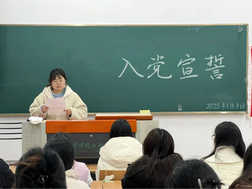 最后,学生党支部书记郝思捷老师发表讲话,她首先向新入党的同志表示祝贺,强调入党宣誓是对党的庄严承诺,要求党员们坚定共产主义信仰、牢记宗旨、遵守纪律、履行义务。入党宣誓不是终点而是新起点,希望各位同志不要辜负党组织的殷切期望,发扬党的优良传统,充分发挥先锋模范作用,为实现中华民族伟大复兴贡献自己的力量。