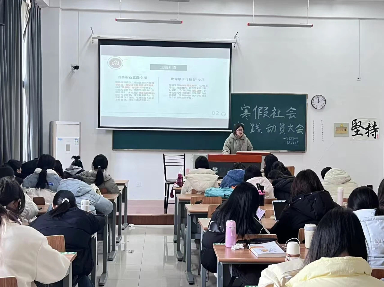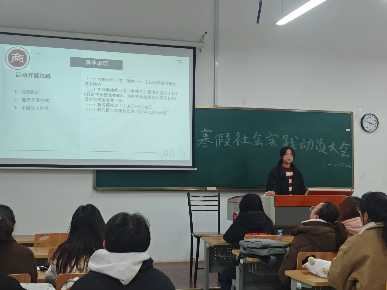 动员大会结束后,各班纷纷召开寒假社会实践动员会,鼓励同学们积极投身实践,在社会大课堂中不断磨练自己、提升自己。