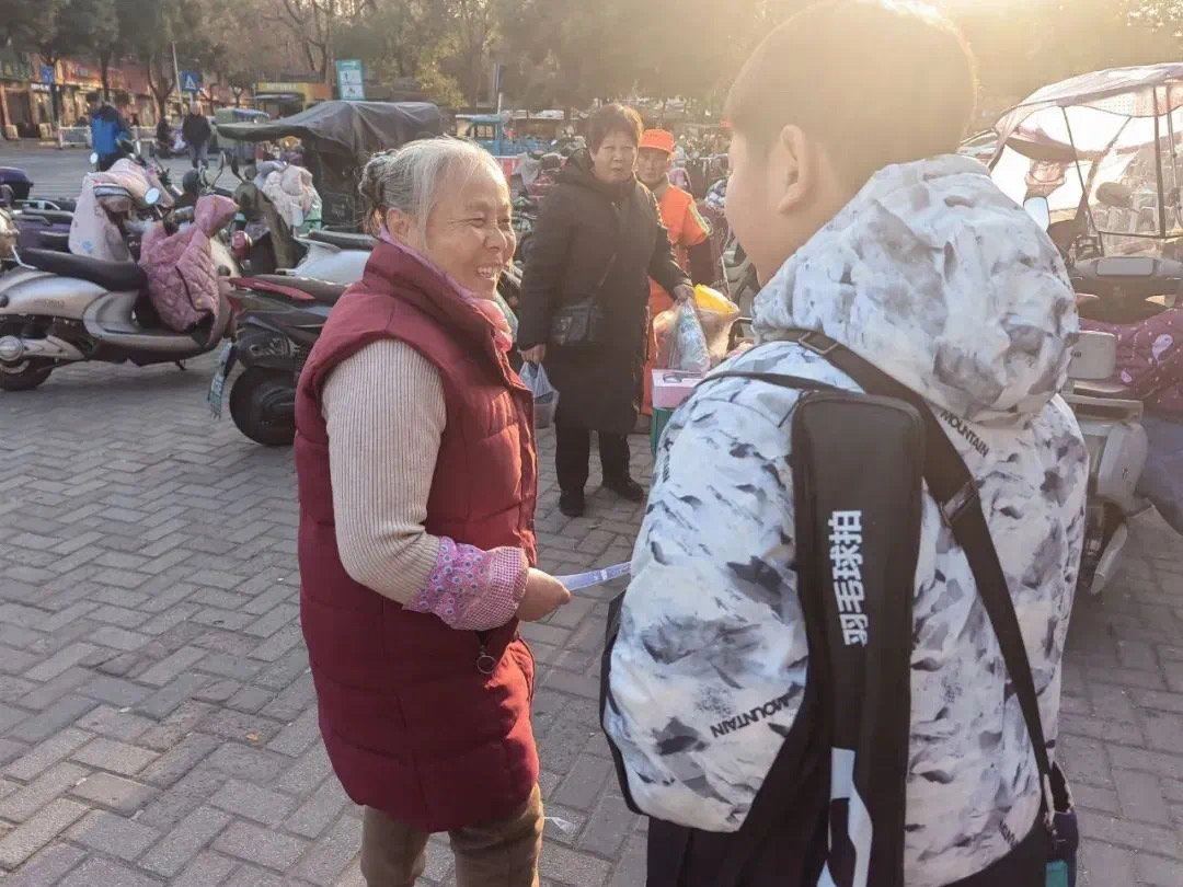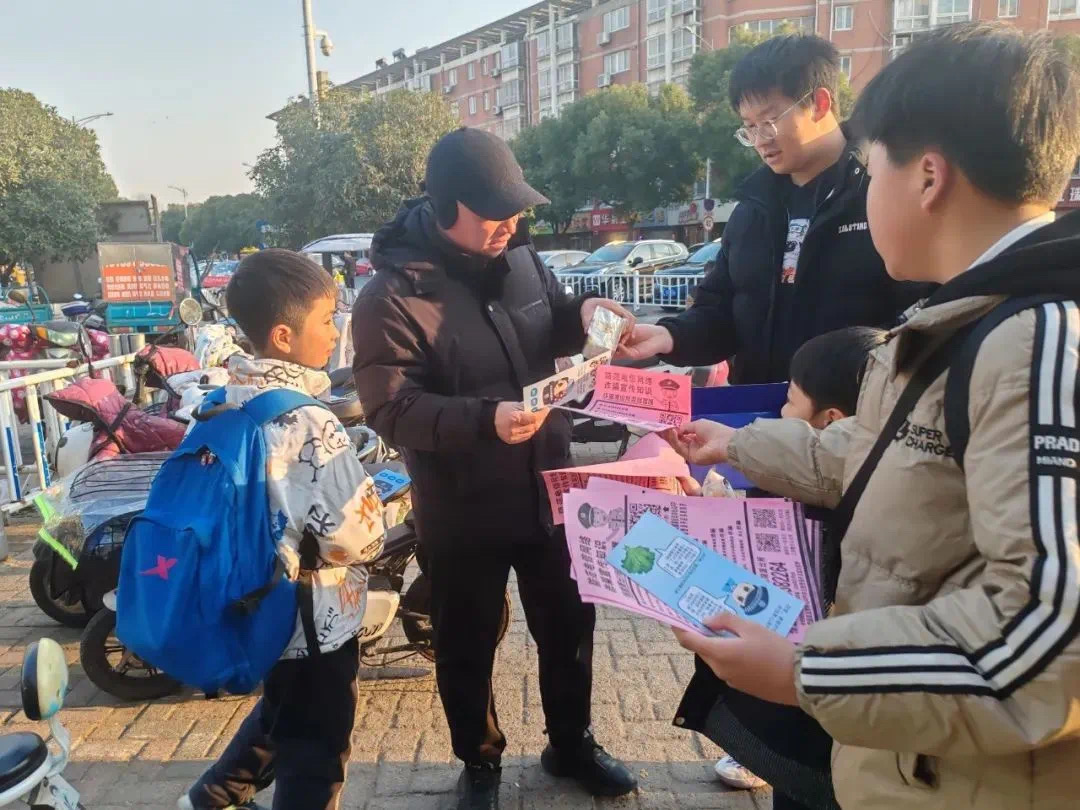 为了让孩子们将所掌握的知识更好地运用到实际生活中,团队成员和老师们带领孩子们从课堂转移到了附近的超市,在超市门口设立了防诈知识宣传站点。小朋友们克服了内心的恐惧,热情勇敢地向来往的市民发放反诈宣传单页,为老人们详细讲解反诈知识,传递应对诈骗的小妙招。