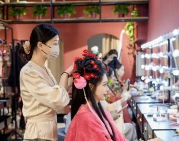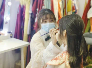 活动伊始,非遗传承人与专业汉服爱好者一同为小队成员提供汉服穿戴指导。从选择合适的汉服款式、搭配配饰,到讲解汉服穿戴的礼仪规范,小队成员在专业人士的指导下,一步步完成了从现代装扮到古代风韵的转变。然后由专业化妆师为我们化上中国古典妆容,每个人的汉服款式不同,对应的妆容也不一样,可谓各具特色。小队成员纷纷穿上自己精心挑选的汉服,与同伴们分享自己的穿搭心得与体验感受。现场还设置了拍照打卡区,供参与者们留下珍贵的汉服体验瞬间。