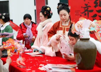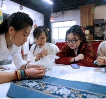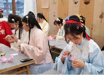 随后,在汉服制作技艺展示区,非遗传承人现场演示了汉服制作的关键步骤,包括面料选择、剪裁缝制、刺绣装饰等。汉服制作技艺中蕴含了多项中国非物质文化遗产的精髓,传承了蜡染、纺织、镶嵌、绣制等多项技艺。参与者们不仅可以近距离观看这些精湛技艺,还有机会亲手尝试简单的汉服制作,感受传统手工艺的魅力。