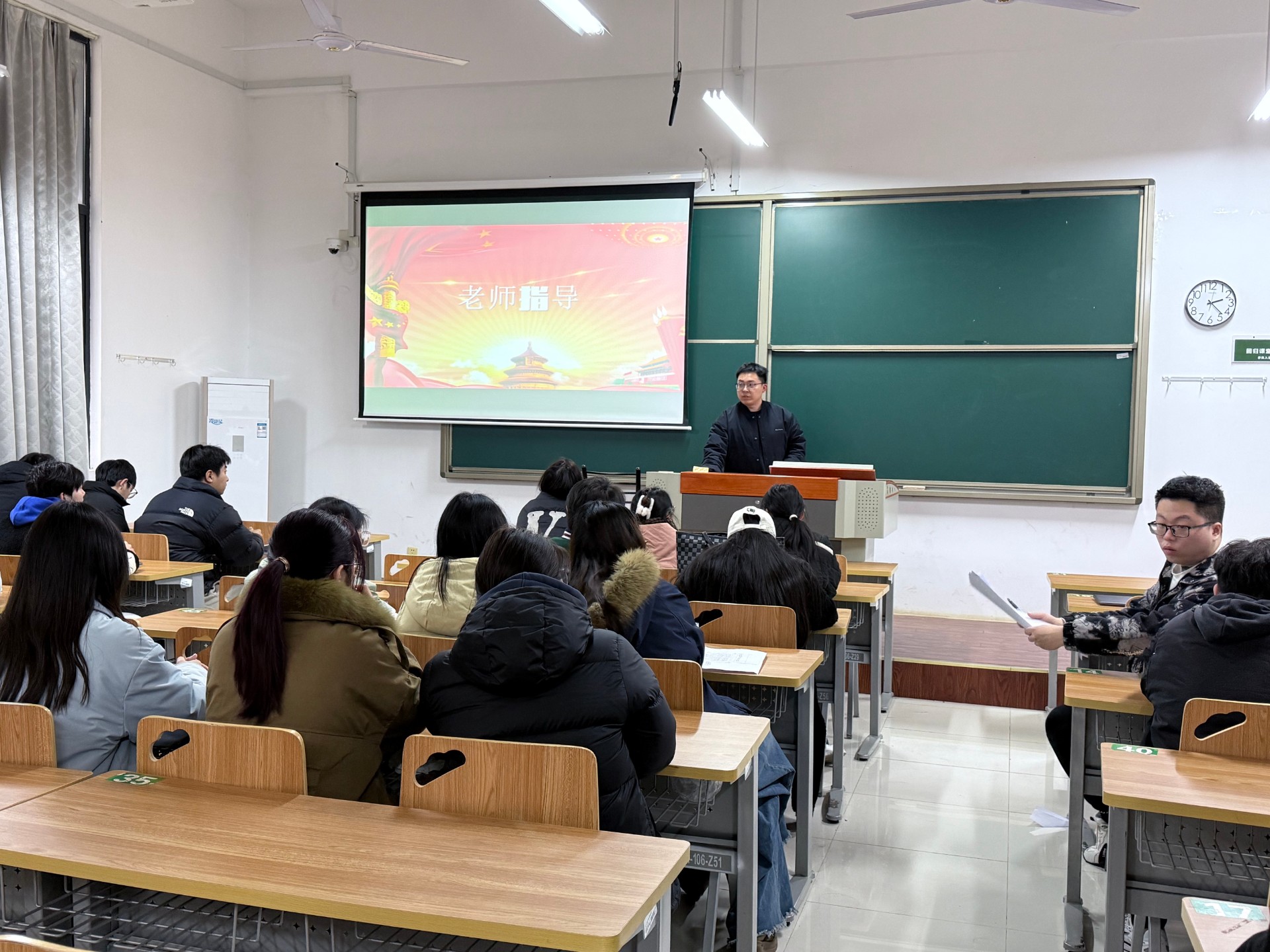 班会上,朱雨炜老师首先结合学院课堂管理制度强调考勤手册记录和无手机课堂落实的规范性与严肃性。针对学生日常管理,朱雨炜老师再次重申请销假制度,要求全体同学务必正规规范提交请假申请。