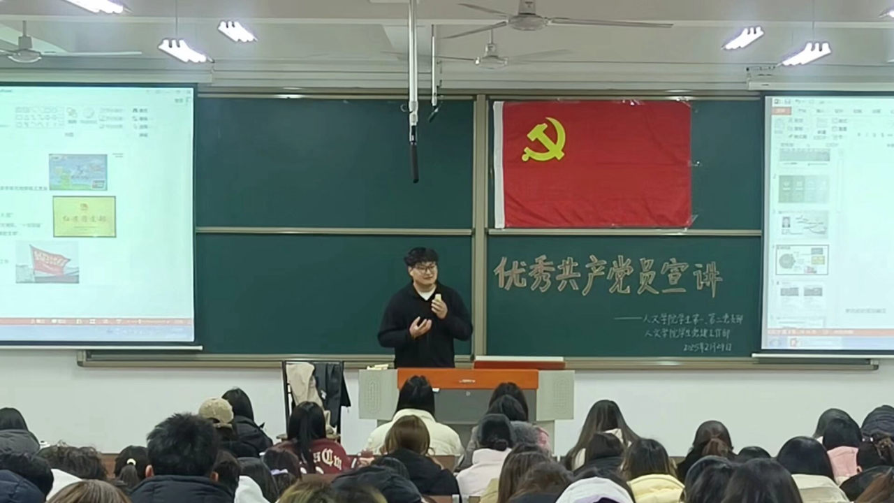 为激励广大师生坚定理想信念,强化党性修养,人文学院于2025年2月24日18:00在敏行楼229开展优秀共产党员宣讲活动。