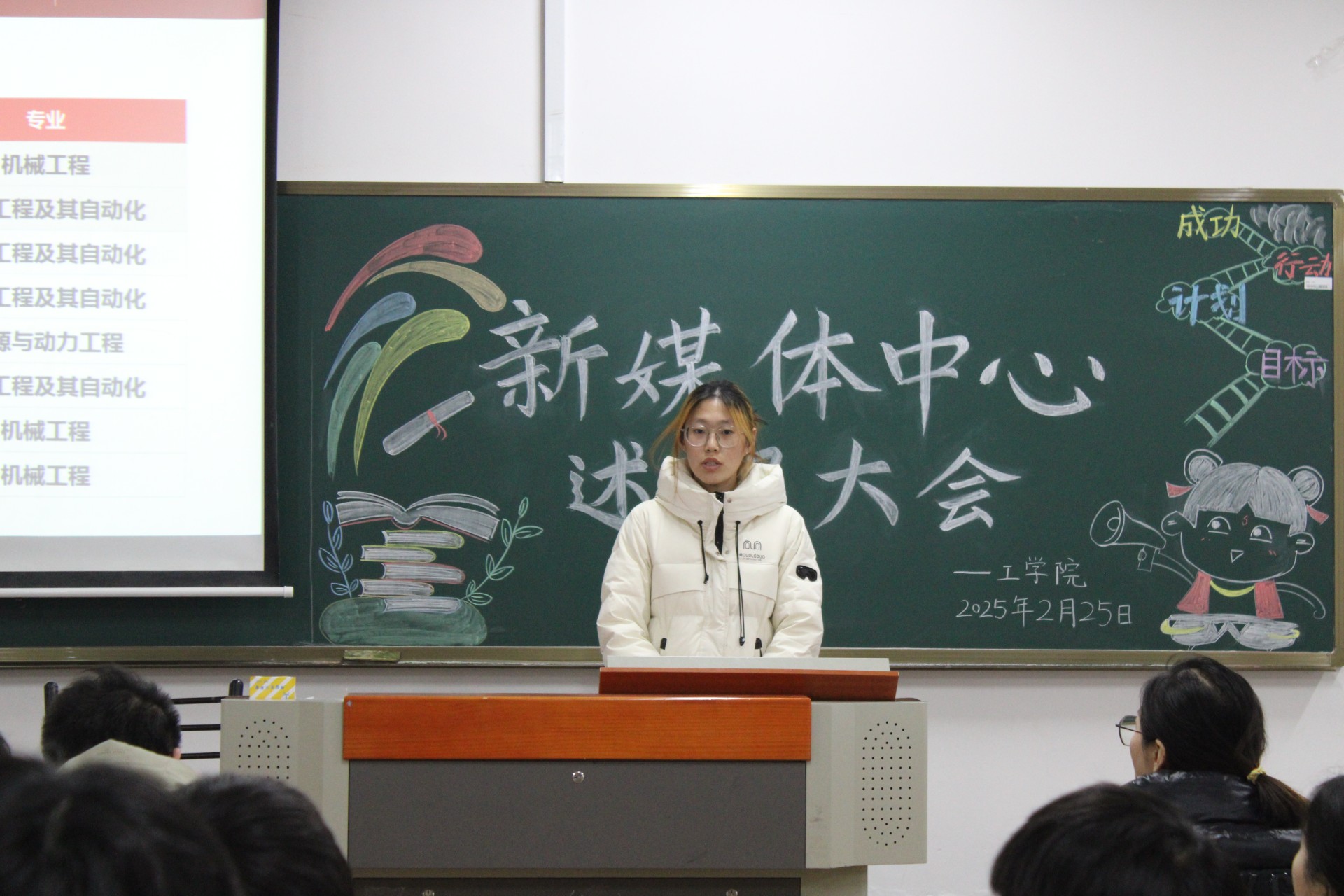 大会伊始,赵颖同学汇报了上一学期的各项工作与成果,同时也指出了部门成员存在的不足,希望成员们能够加强团队协作,提高沟通能力。其次,各部门负责人分别从部门介绍、工作总结、工作不足、未来展望四个方面进行了总结,他们表示新媒体中心各部门将不断提升专业素养和沟通能力,共同保证工学院特色栏目的数量与质量。
