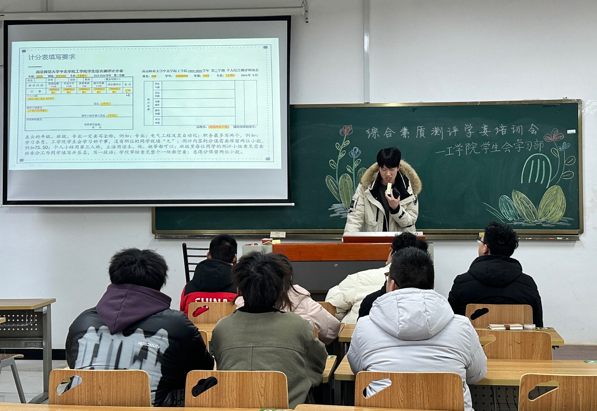 为确保工学院新学期综合素质测评工作高效开展,工学院学生会学习部于2月26日下午在敏行楼113教室组织召开新学期综合素质测评培训会。会议面向大一及大三专转本全体学习委员,重点就填写规范、评分细则、收集审核三个方面进行专项指导。