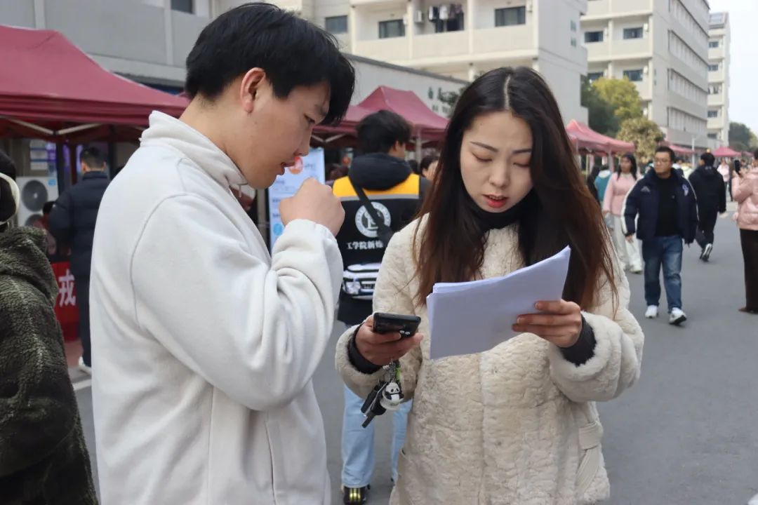 招聘会现场人头攒动,气氛热烈。众多知名企业参展,涵盖了教育、科技、金融、制造等多个领域,为学生提供了丰富多样的岗位选择。我院学子手持精心准备的简历,穿梭于各个展位之间,与招聘人员进行深入交流,了解企业的发展情况、岗位要求和薪资待遇等信息。许多企业的展位前都排起了长队,招聘人员耐心地解答求职者的问题,收集简历,并进行初步的面试筛选。