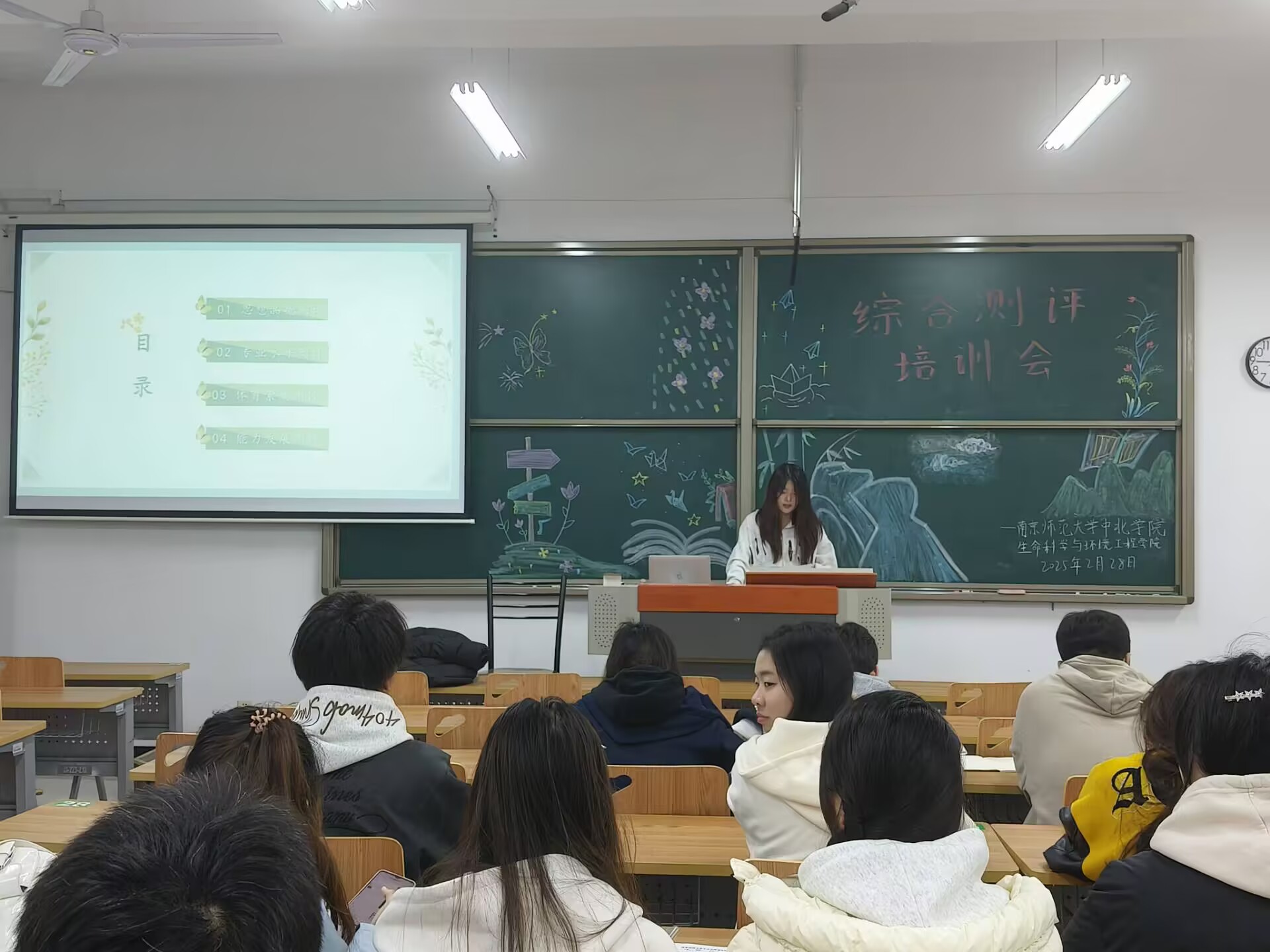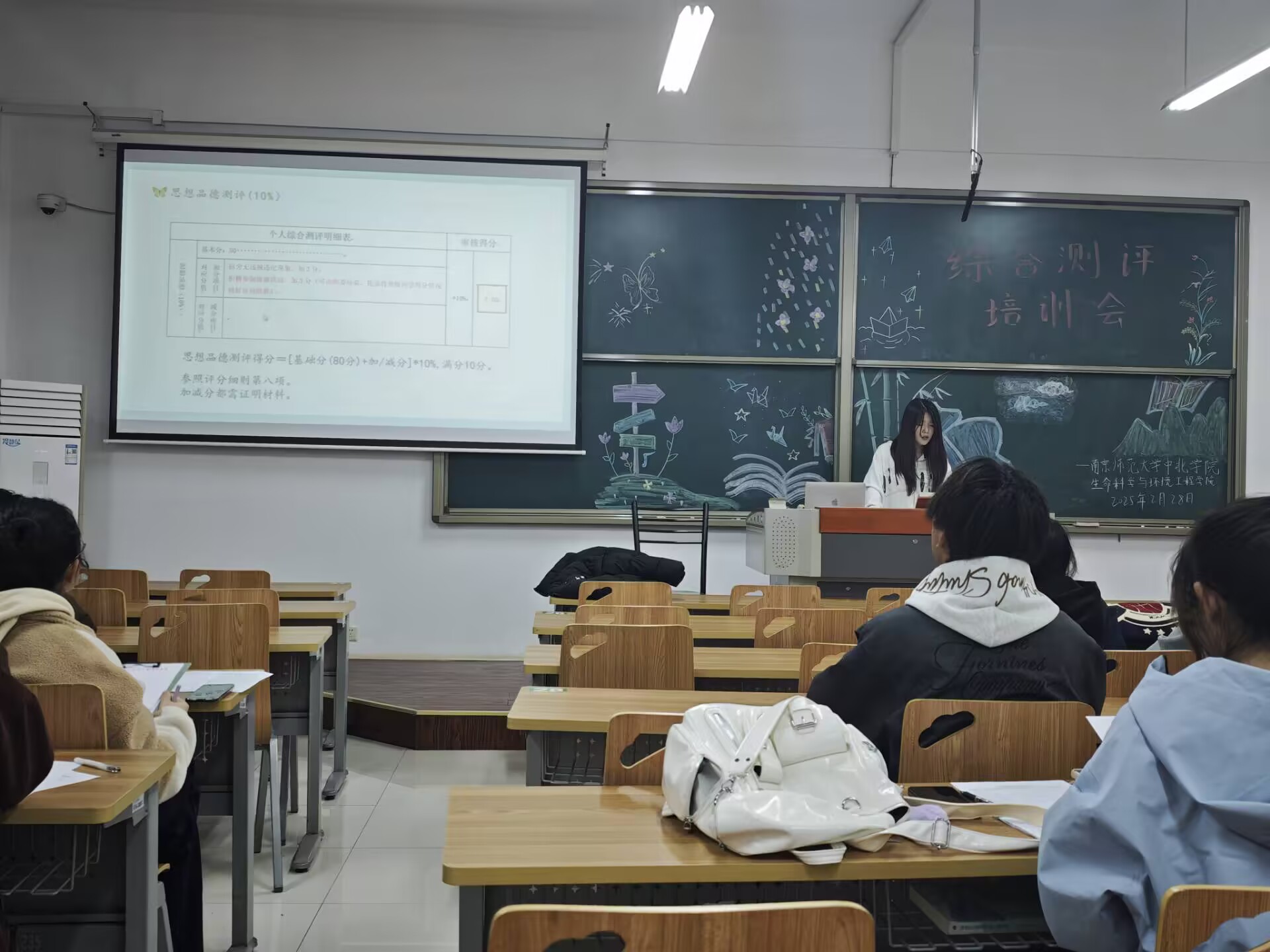 培训会上,由学生会学业发展部负责人刘慧晴详细讲解综合素质测评指标体系,包括学业成绩、社会实践、品德表现等关键维度,分析各个指标权重及评分标准,同时分享实用的测评方法与技巧,强调测评过程中的注意事项,如数据的准确性、评价的客观性等。