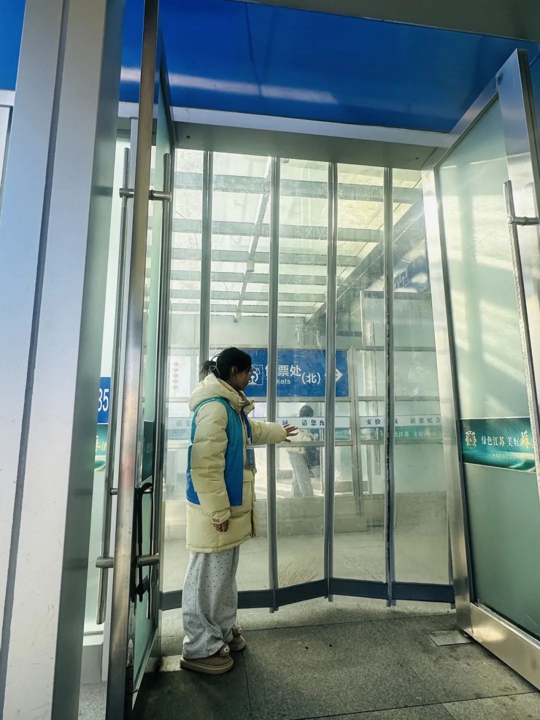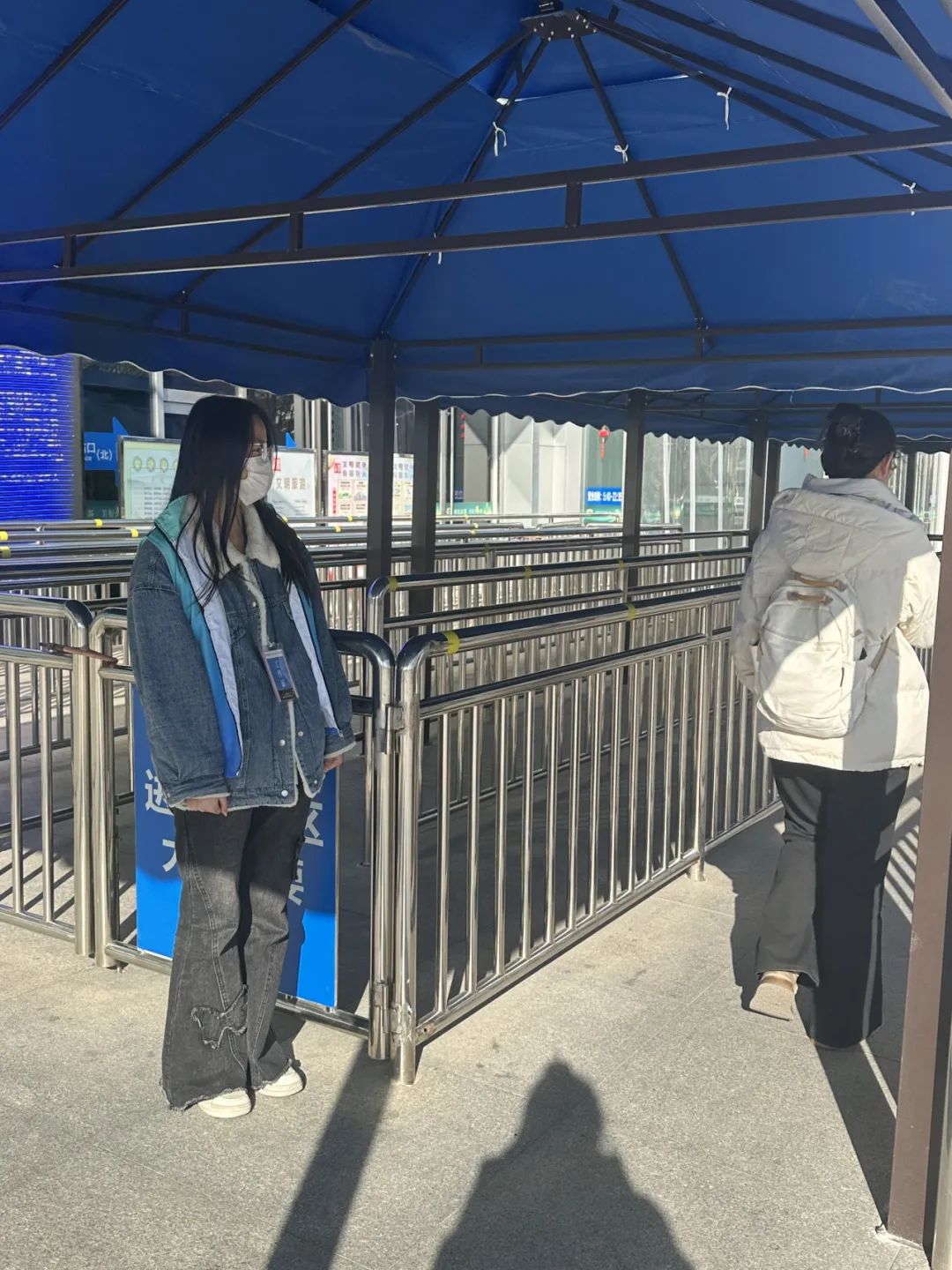 1 月 10 日至 15 日,由 11 名学生组成的“语”心同行志愿服务团队,在赵峥嵘老师的带领下,于丹阳高铁站设立志愿服务点。当遇到携带大件行李或行动不便的中老年乘客时,志愿者们会迅速迎上前去。有的志愿者主动帮忙搬运行李,他们双手稳稳地提起行李,小心绕过人群,将行李搬运至指定位置,确保行李安全,同时也避免因行李堆放造成通道堵塞。