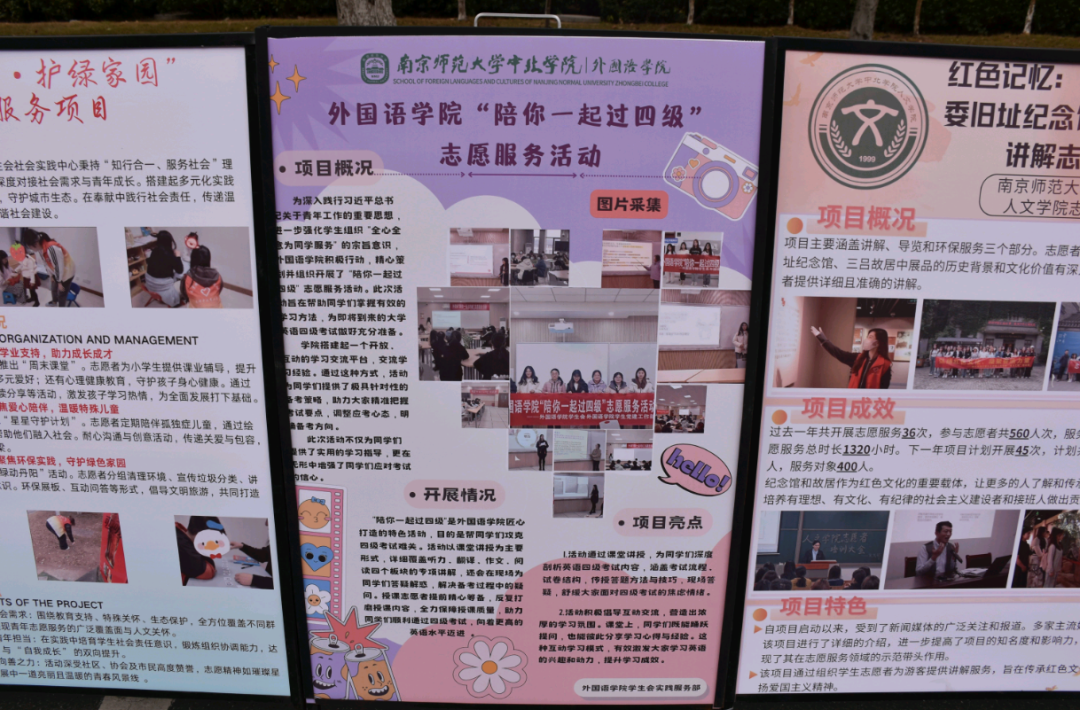此次活动中,外国语学院的志愿者们精心展示了 “陪你一起过四级” 志愿服务项目的丰富内容。活动现场,四级相关题型的讲解 PPT 循环播放,吸引了众多同学驻足观看。该志愿服务项目旨在帮助同学们提升英语水平,顺利通过四级考试,通过实际行动为同学们的学业发展助力。许多同学表示,通过此次展示,对四级考试有了更清晰的认识,也对外国语学院的志愿服务项目充满期待。