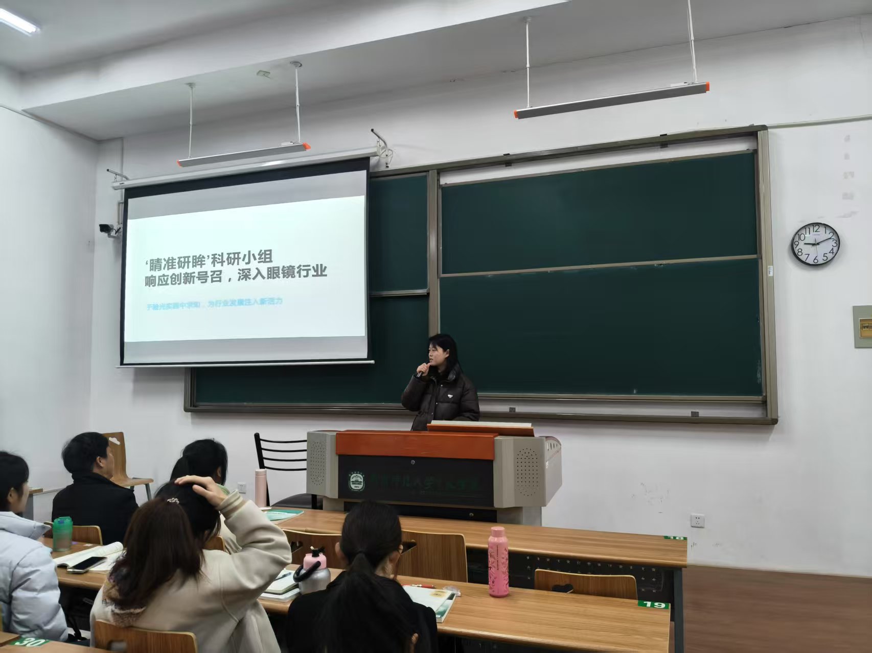 “从眼镜实践起航,奔赴眼视光大创新征程”小组汇报人高新惠以眼镜设计与材料优化为切入点,探讨了轻量化、智能化眼镜产品的研发方向。