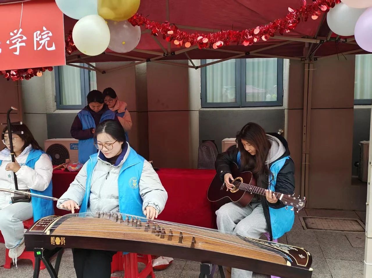 为了丰富同学们的校园文化生活,展示志愿者勇于创新、蓬勃向上的精神风貌,音乐学院于2024年3月5日14:00在起凤楼广场积极参与了由共青团ky.com委员会举办的第二届志愿者文化节活动。我院志愿者们通过古筝,二胡和吉他来展现音乐学院学子的风采。