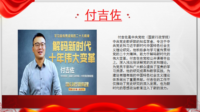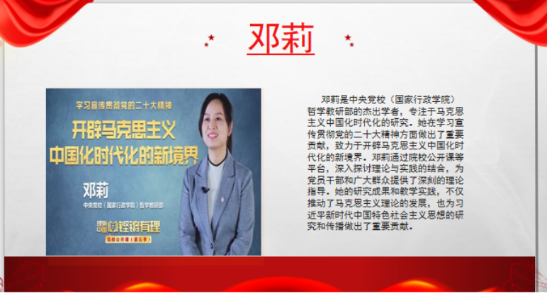 “理启新程 鸣奏华章”这一主题涵盖党的理论知识、党史学习教育、党性修养等多个方面。以时间轴为线索,通过线上直播的形式,全面梳理新时代十年在经济、政治、文化、社会、生态文明等领域的伟大变革,如GDP稳健增长、脱贫攻坚全面胜利等成就,分析变革背后的理论支撑与实践逻辑。让入党积极分子深刻理解党在不同阶段的使命与担当。