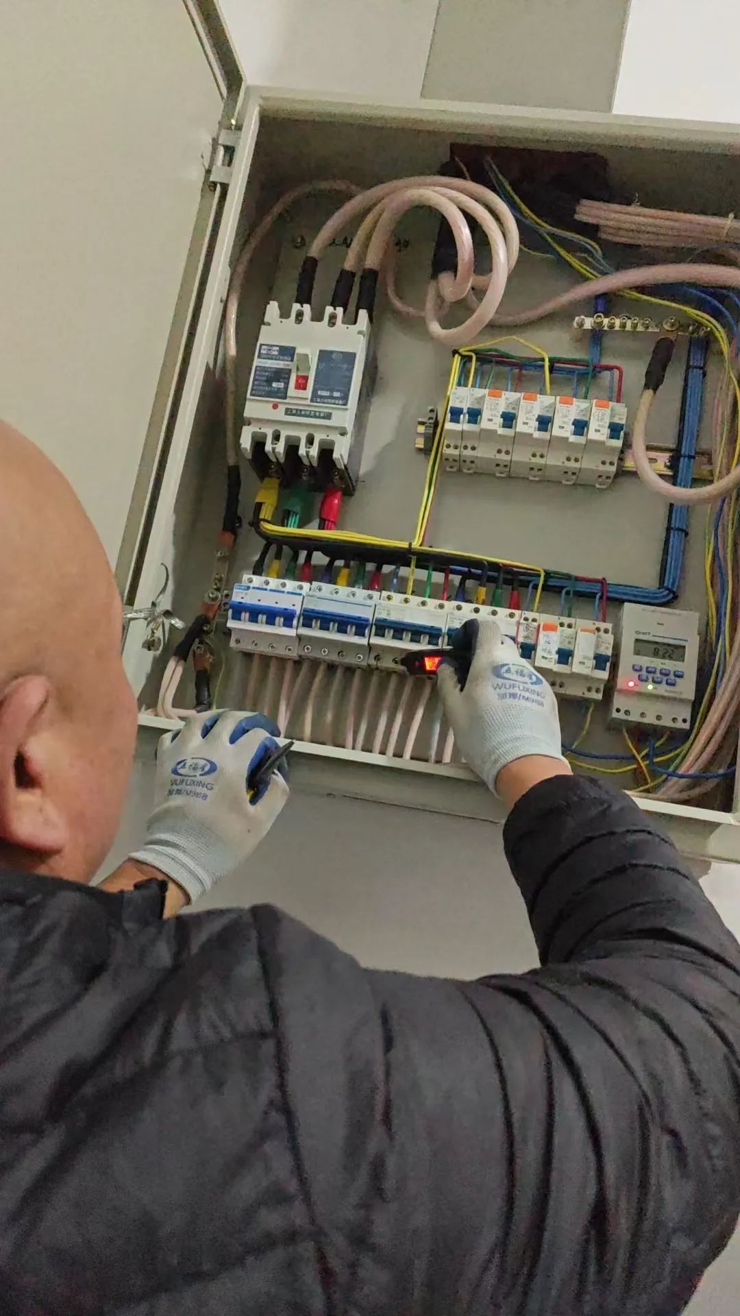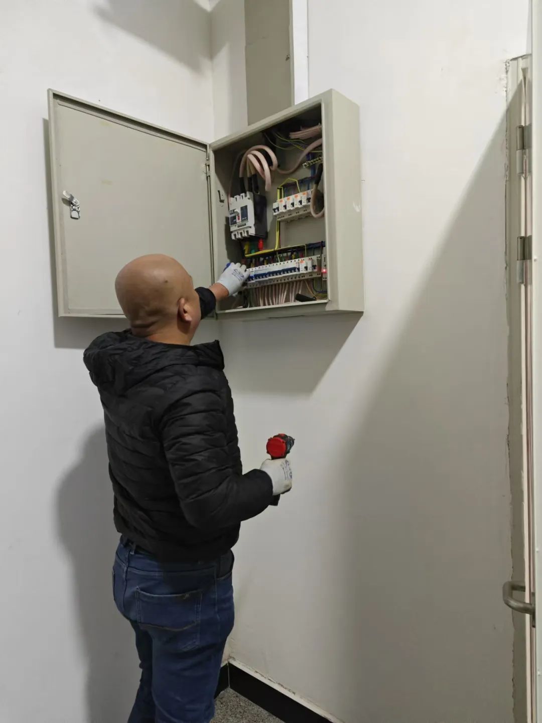 在排查过程中,电工师傅对配电箱及8个机房内的空气开关、电线等用电设施进行了逐一检查,重点关注了设备是否存在老化、破损现象;设备工作时是否有异常声响;是否存在私拉乱接电线的现象等情况。
