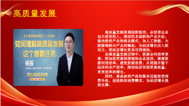 在参与本周的"一周一学,一周一习"理论知识学习活动中,我深刻理解了高质量发展的内涵。高质量发展强调创新驱动,通过技术创新和产业升级,为经济增长注入新动力,这不仅让我看到了国家经济蓬勃发展的希望,也激励我在今后的工作和学习中,要积极寻求创新,勇于突破,为实现更高质量、更有效率的增长贡献自己的力量。