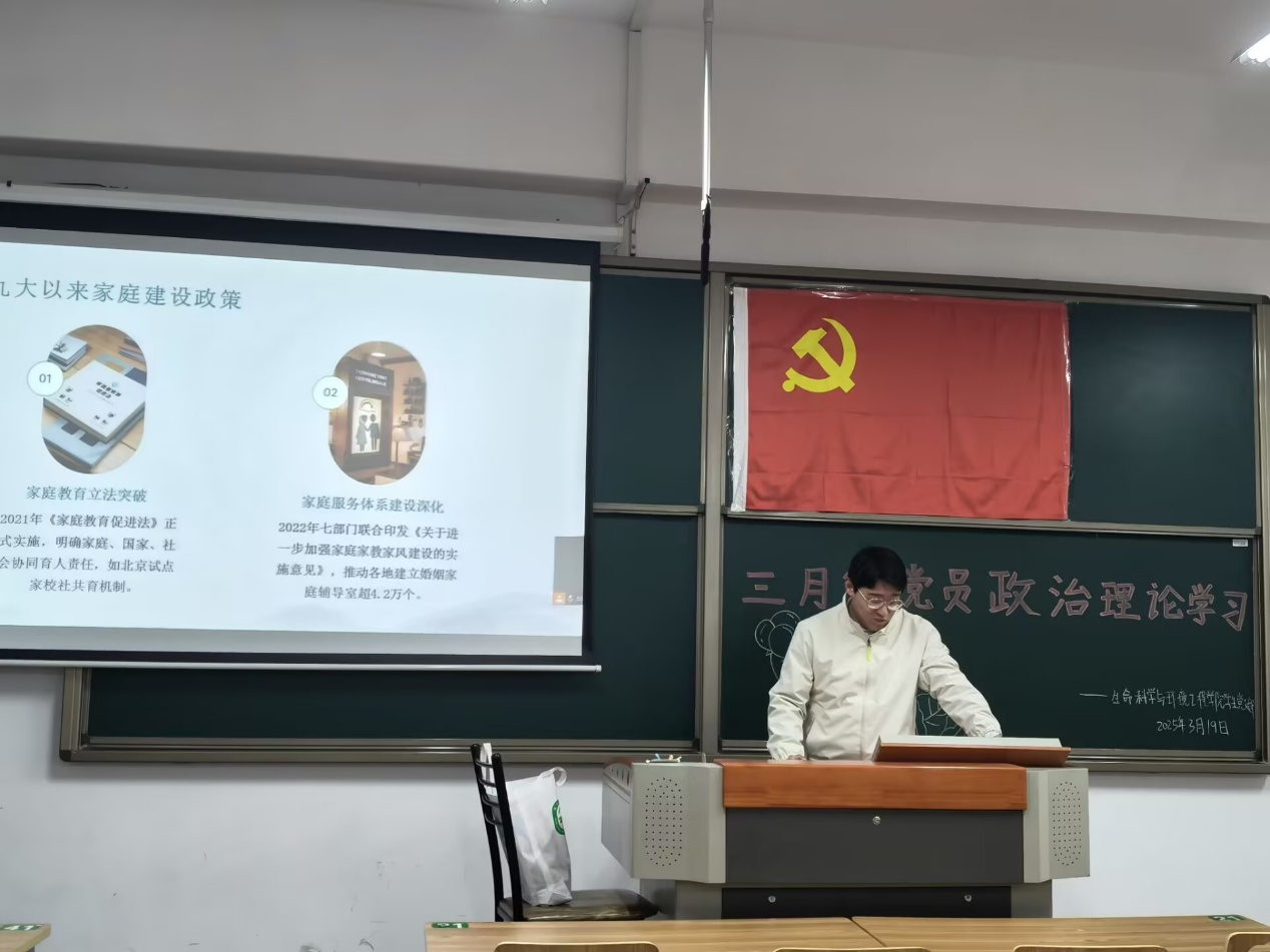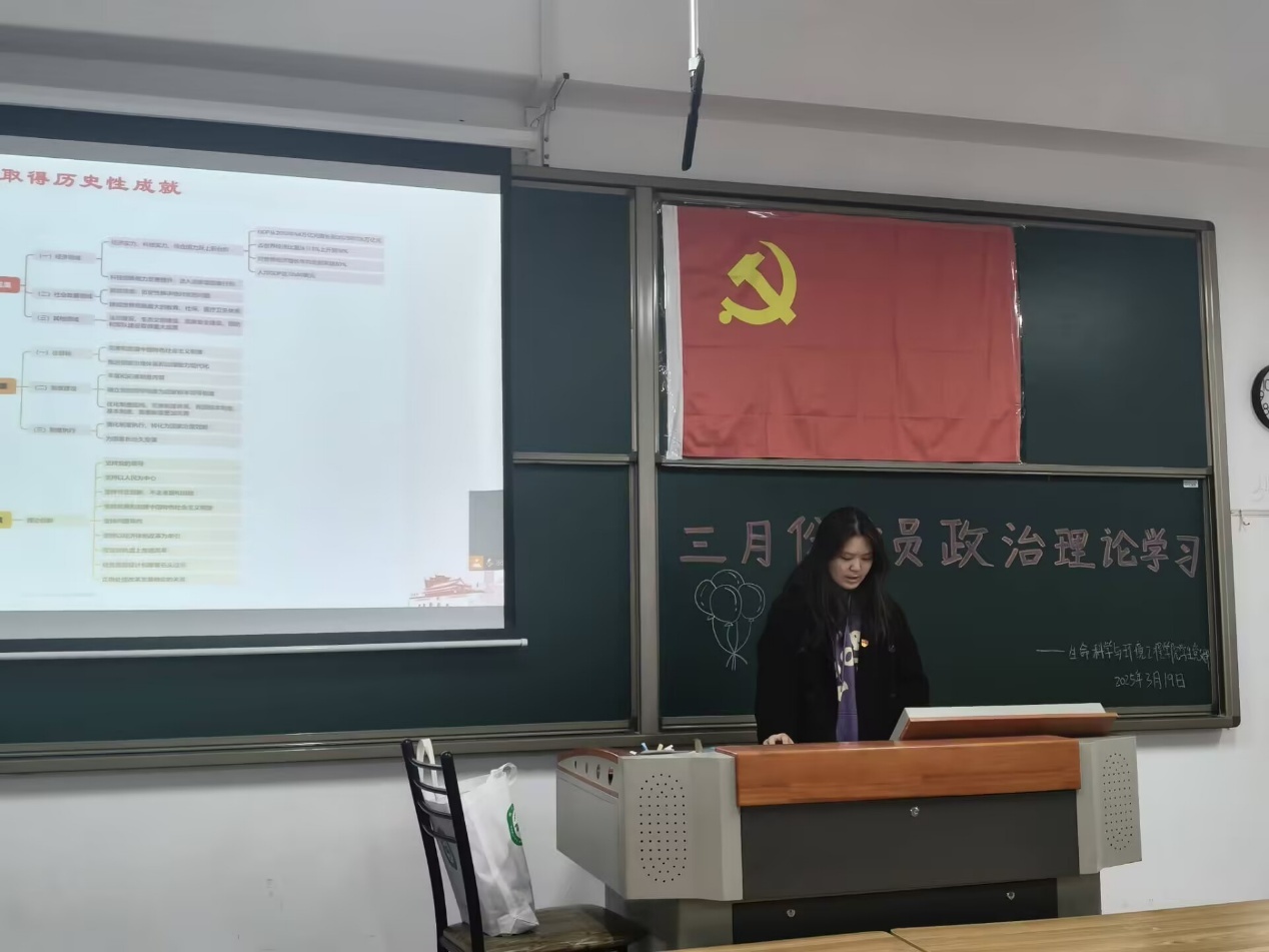 为进一步提升党员的政治理论素养,增强党组织的凝聚力,2025年3月19日16:30,生命科学与环境工程学院学生党支部于一教208教室组织开展三月份党员政治理论学习会。生命科学与环境工程学院学生党支部书记朱雨炜老师以及全体学生党员参加本次会议,会议由皮亚婷同志主持。