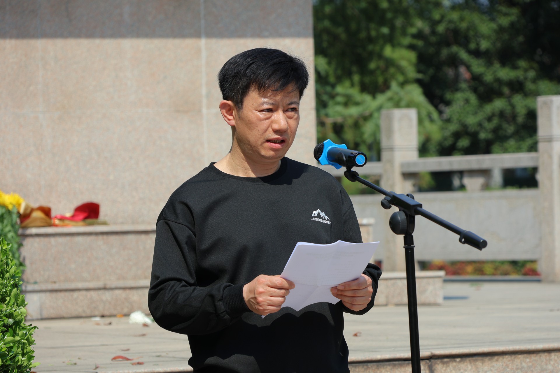 史乐群先生代表丹阳市退役军人事务局发言,呼吁同学们做红色基因的“激活者”,让历史记忆焕发时代光彩;做英烈精神的“播种者”,用青春智慧浇灌理想之花;做崭新征程的“开拓者”,以创新实践回答时代之问。