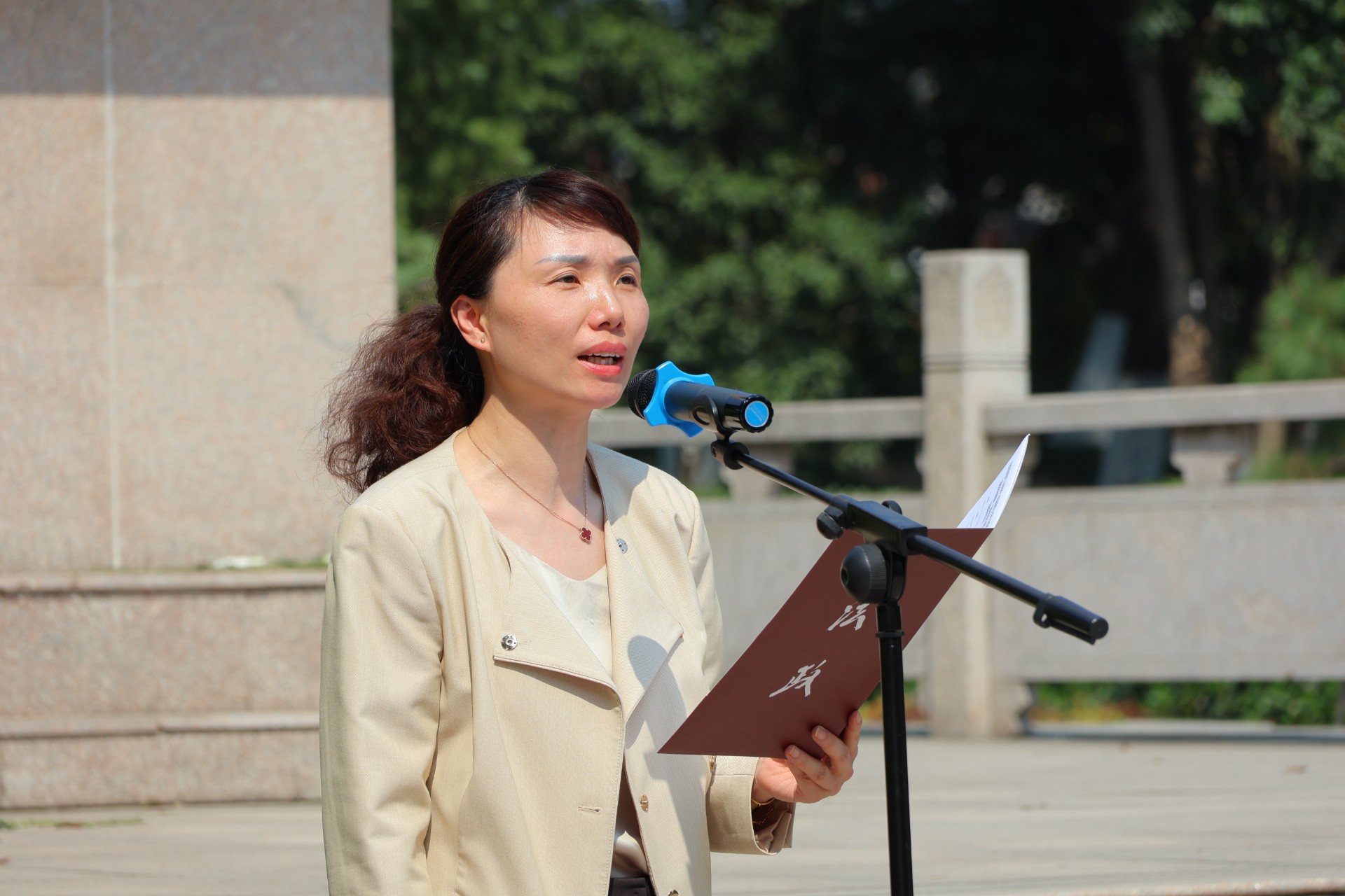 法政学院副院长葛莹莹老师发言,葛老师从“仰望精神丰碑”“传承红色基因”“争当时代先锋”三个层面号召全体师生,学习红色精神,筑牢信仰之基,厚积实干之力,在课堂教学中厚植家国情怀,在社会服务中践行初心使命。