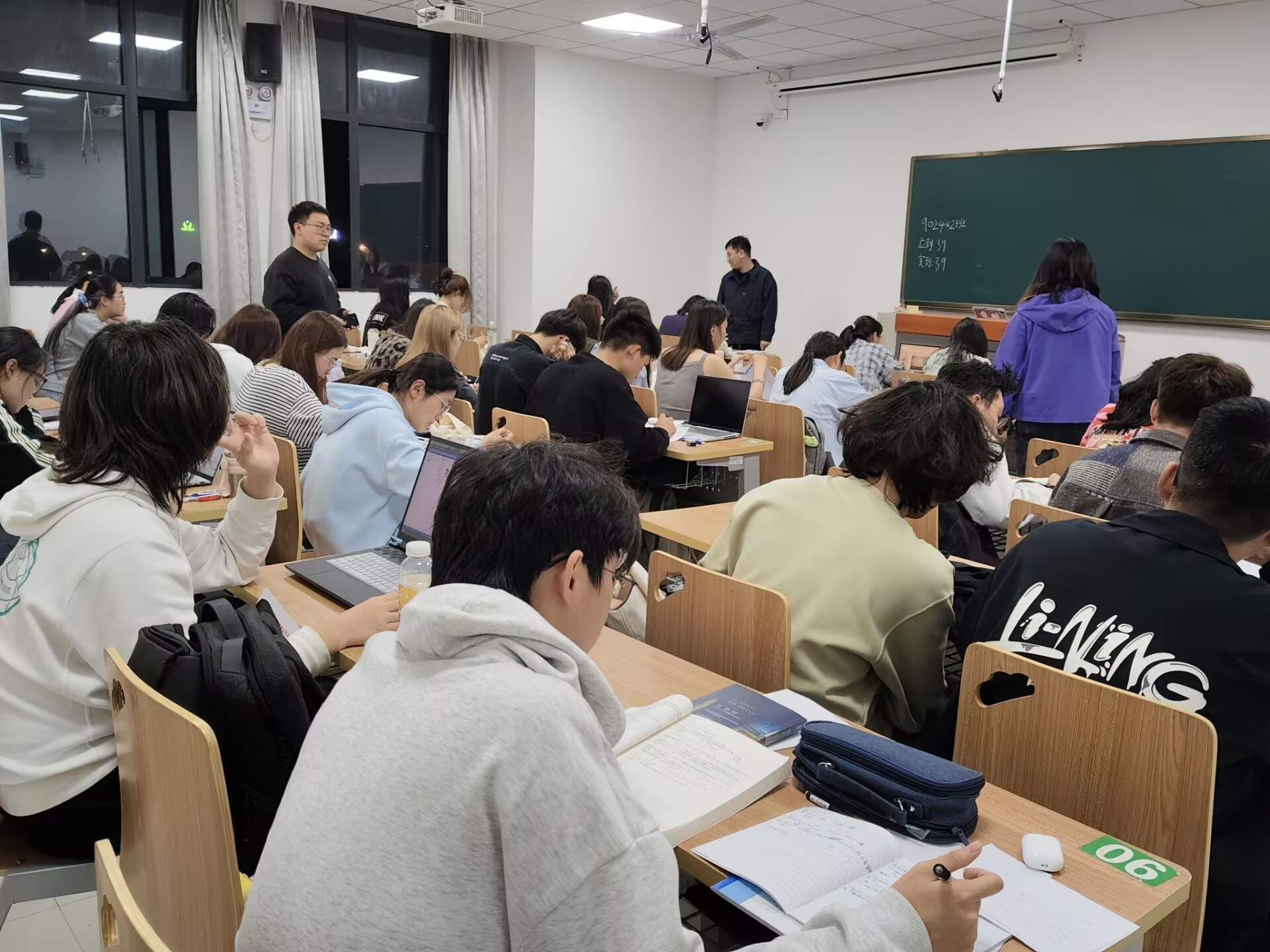宇波老师再次向同学们强调了晚自习纪律要求:专注学习,禁止闲聊或睡觉,并督促班委切实履行监督职责,确保制度有效落实。同时,考虑到部分同学的学习需求,学院允许在班委及班助的监督下有限使用平板或电脑,但严格限定为学习用途,严禁任何娱乐行为。检查中,老师们还主动与同学们交流,鼓励同学们制定系统学习计划,合理分配时间。