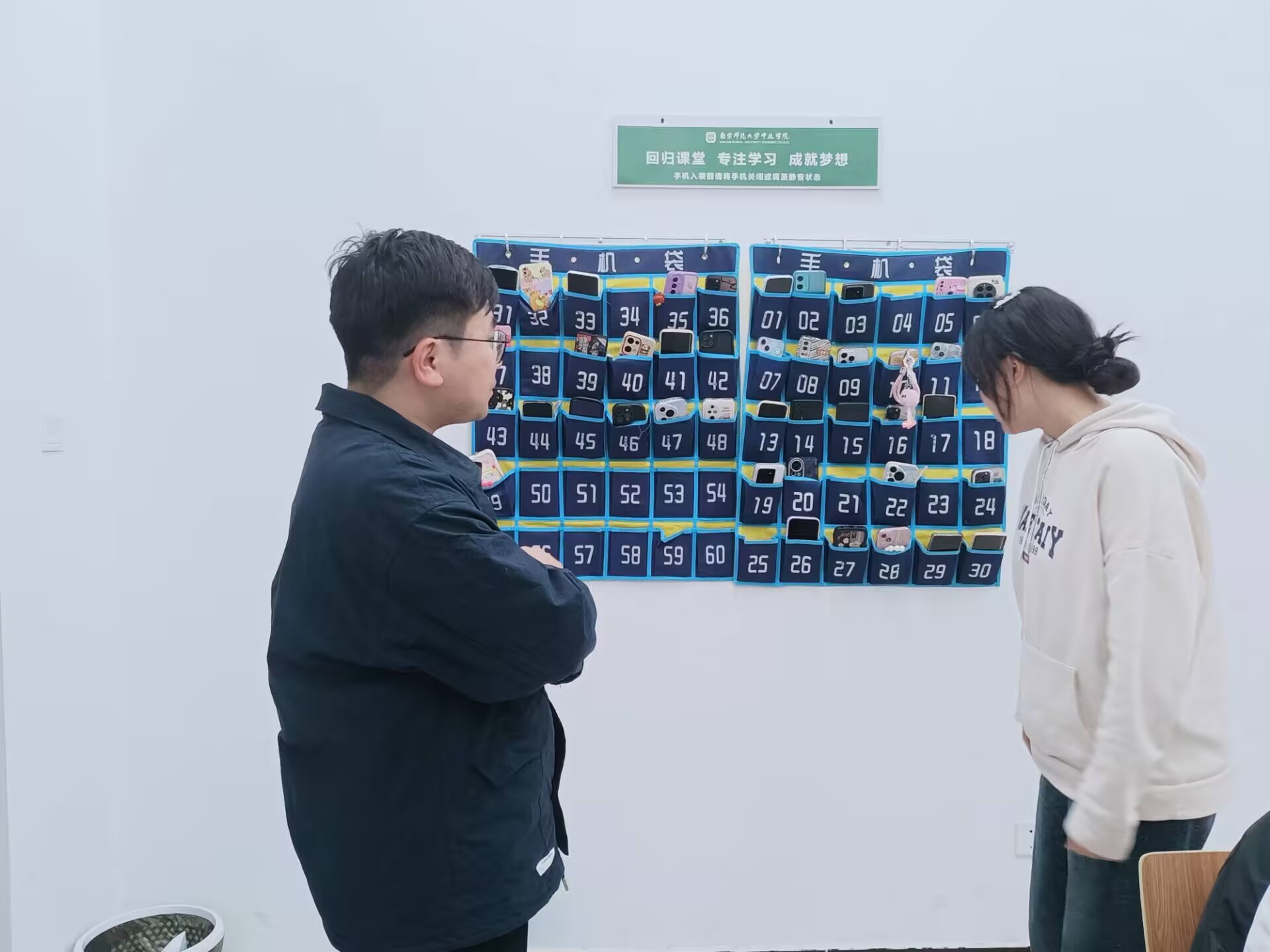 检查过程中,三位老师重点核验了各班级手机袋的使用情况。学院始终严格执行晚自习手机入袋制度,要求学生将手机统一存放,以最大限度减少外界干扰,确保同学们能够全身心投入学习。检查结果显示,绝大多数班级落实到位,学生纪律意识显著提升,自习秩序井然,展现出良好的学习风貌。