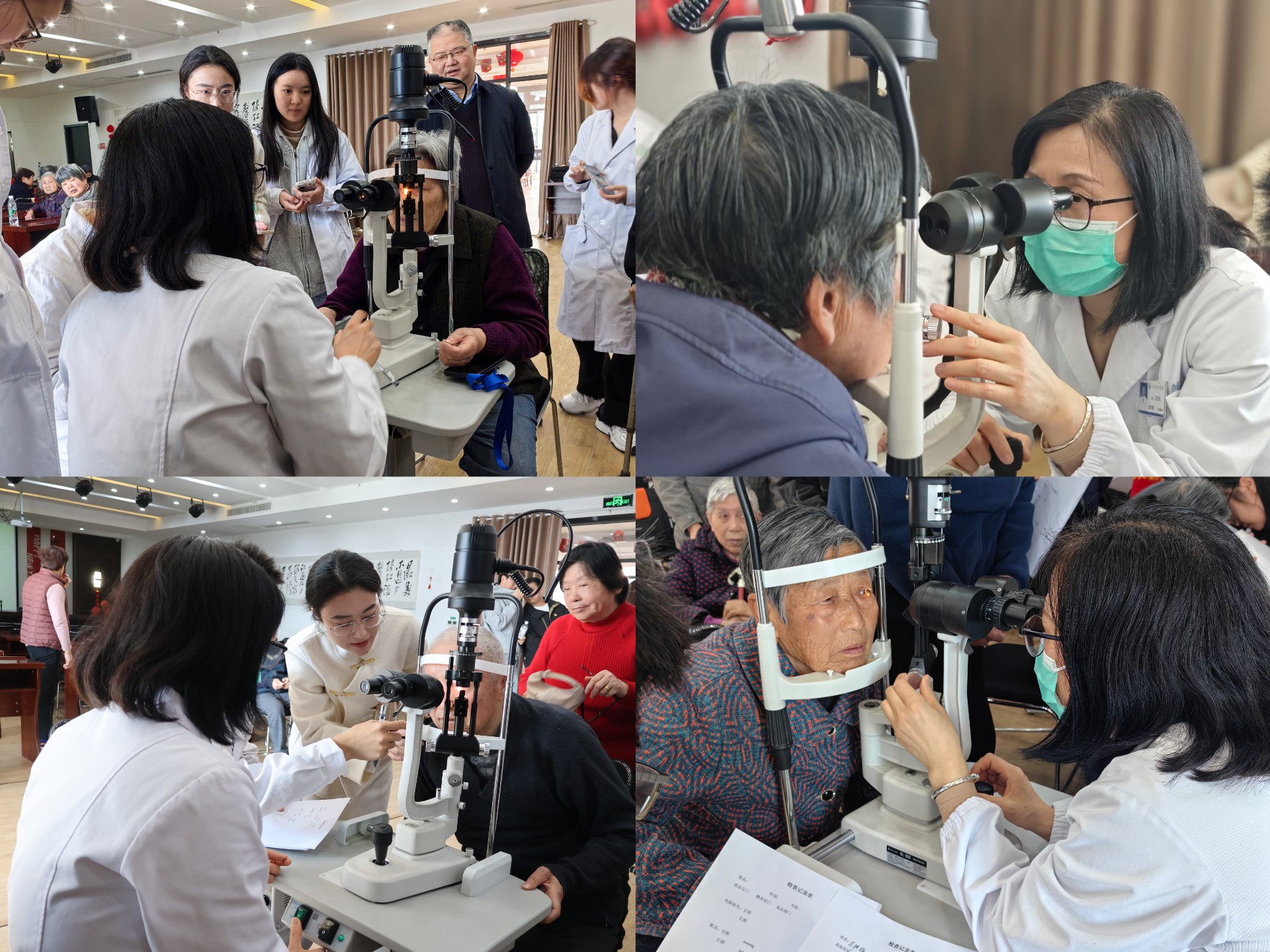 讲座结束后,丹阳市中医院眼科主任夏君慧、中北学院眼视光学教师丁然然带领学生志愿者充分发挥技术优势,依托眼压计、AI眼底照相筛查设备、裂隙灯等精密设备,为养老院全体老人开展免费眼健康筛查。