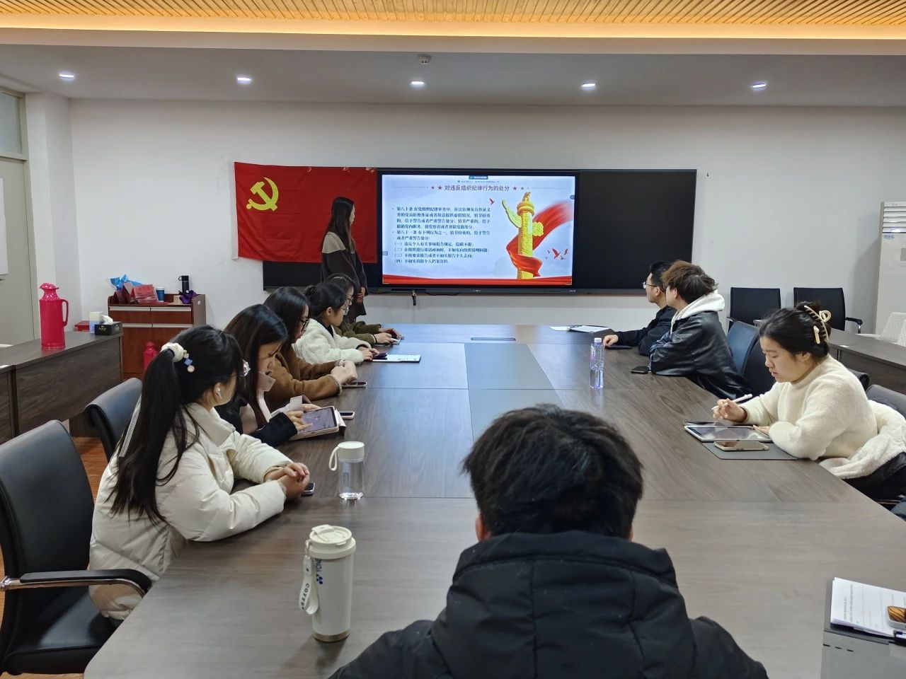 在学习时,杨艳老师重点解读《中国共产党纪律处分条例》第七章组织纪律内容,讲解如何在实际工作中严守组织纪律。她强调,学生党员要坚决执行党组织决议,规范党内政治生活,在学业科研和日常生活中贯彻组织纪律,与党中央保持高度一致。