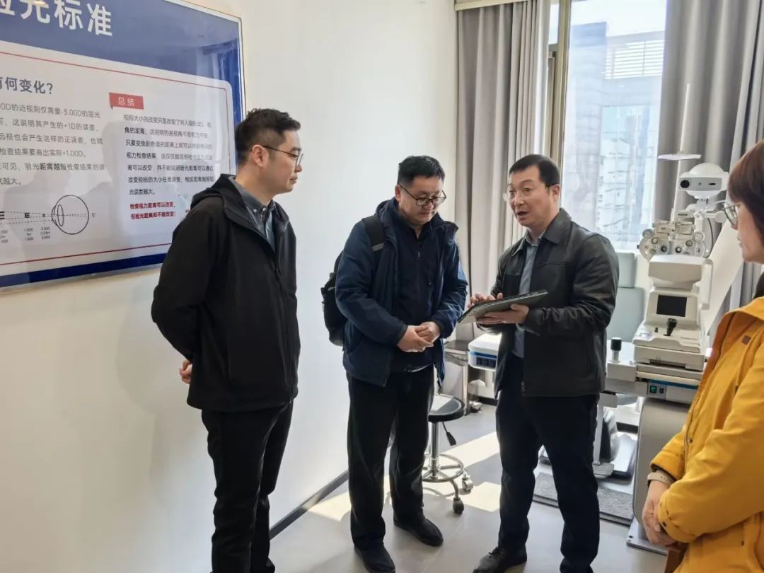 紧接着,众人参观了验光区。验光区配备了最先进的验光设备,不仅充分展示了鸿晨集团在光学产品研发之外,在光学应用领域——视力检测方面的卓越实力,也让来访人员直观地了解到鸿晨集团的产品在实际应用中的效果和意义。