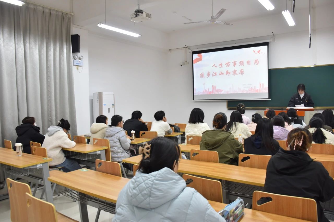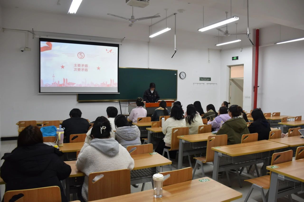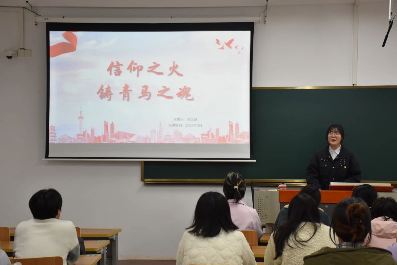2025年3月18日下午,外国语学院第二期“青马工程”培训班专题课程《信仰之火,铸青马之魂》在一教302教室举行,由学生党员黄会涵担任主讲,辅导员赵峥嵘与全体学员共同参与。