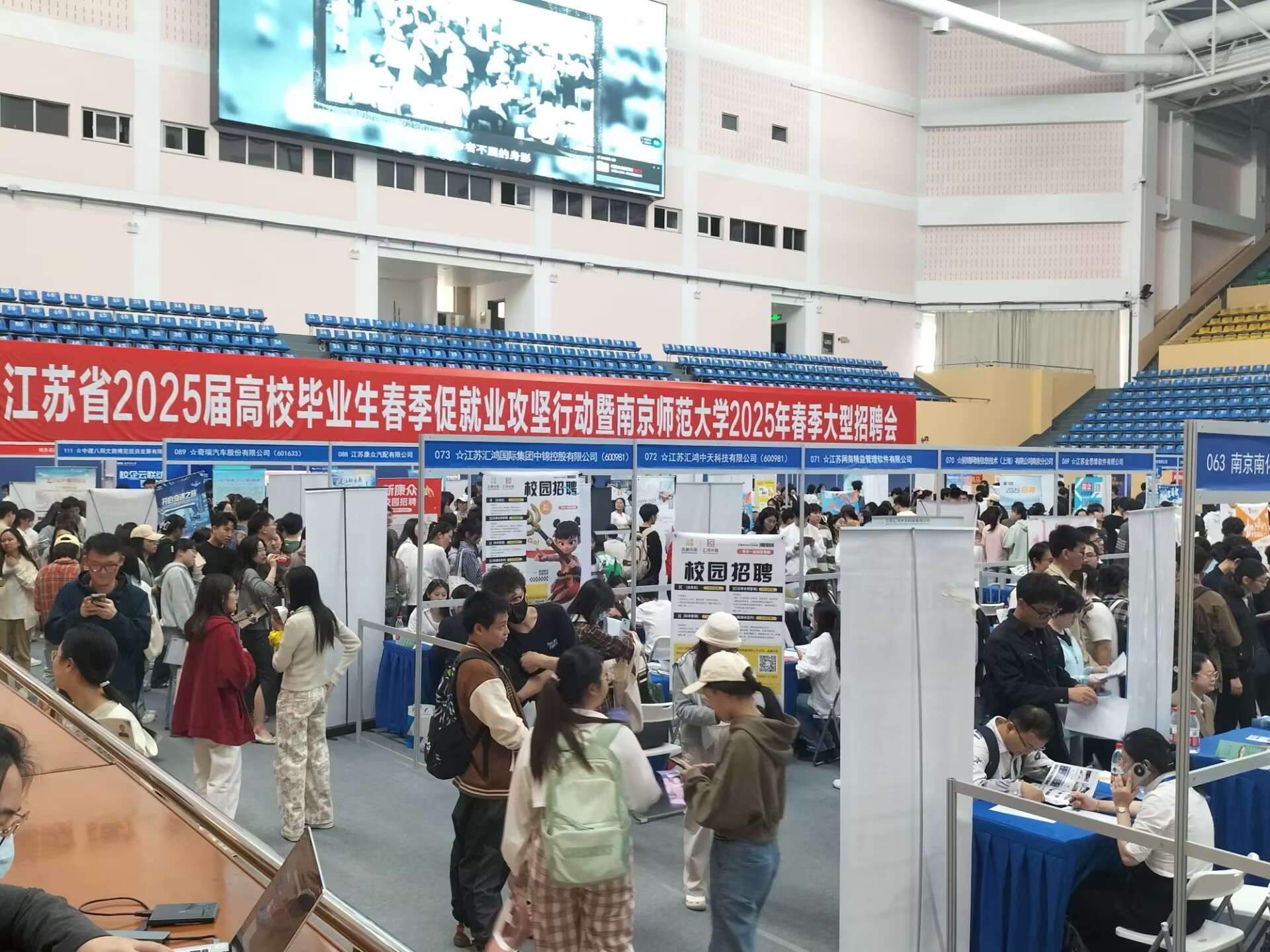 2025年3月26日,江苏省2025届高校毕业生春季促就业攻坚行动暨南京师范大学2025年春季大型招聘会在南京师范大学体育馆盛大举行。ky.com组织部分毕业生共同前往,生命科学与环境工程学院学工办主任张虹老师带队参加此次招聘会,与学生一起了解就业市场,为学生提供就业指导和服务保障。