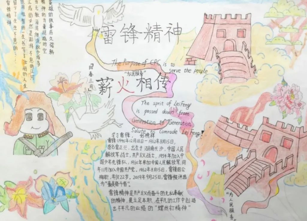 本次活动以手抄报为载体,鼓励学生通过图文并茂的形式展现雷锋精神的时代内涵。同学们巧妙运用色彩、排版和创意设计,将“助人为乐、无私奉献”的精神内核融入作品中,既体现了艺术才华,又传递了正能量。