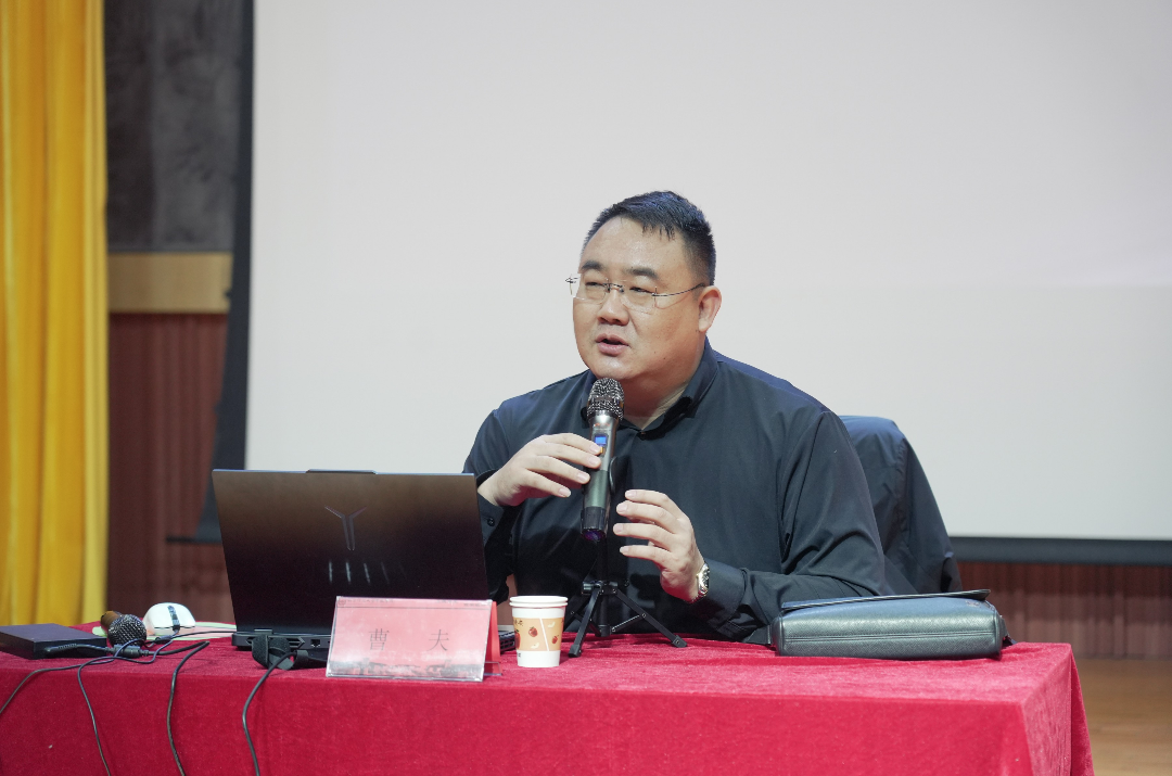 讲座伊始,曹夫校长以自身成长经历为切入点,深情回顾了他的求学与创业历程。他首先分享了大学时期的求职经历和两次考研的心路历程,通过生动的事例向同学们阐释了如何科学规划大学生涯和积极应对成长过程中的挑战。随后,曹校长重点讲述了他创办苏艺艺术高考学校的创业历程,从办学初衷到实践探索,详细解读了包括校址选择、招生策略、课程体系构建、师资队伍建设等在内的完整办学过程。曹校长强调,虽然创业路上充满艰辛与挑战,但每当见证学子们通过学校的培养圆梦理想高校时,所有的付出都化作了无价的成就感与幸福感。这段饱含激情与温度的分享,让在场师生深刻感受到了一位教育创业者的教育情怀与责任担当。