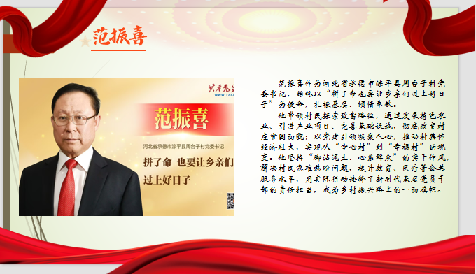 钱素云医生数十年如一日坚守岗位,不仅治病救人,还注重与患者及其家属的沟通交流,让我深刻认识到榜样就在平凡之中。范振喜书记在带领村民脱贫致富过程中,即便自身面临家庭困境也不放弃,他带领全村互帮互助,其间发生的温暖故事让我深受触动。我认为,榜样并非遥不可及。